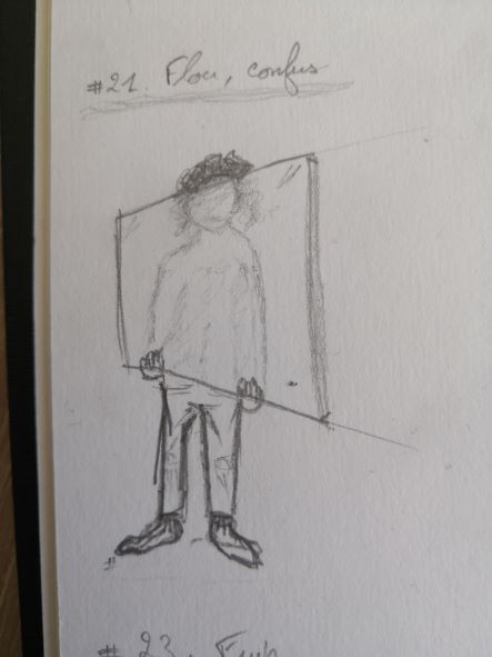Pour ma part, ce thème m'a donné beaucoup de mal, je ne savais vraiment pas quoi faire... du coup bah j'ai fais simple, un perso qui tiens un genre de vitre et qu'on voit par transparence, mais je l'ai dessiné assez rapidement car pas inspiré par le thème 😅