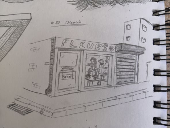 Aujourd'hui je suis assez fier de mon dessin dans le sens où j'ai mis d ela perspective, j'ai été un peu plus loin que mon idée de départ, ça a germé petit à petit et je l'ai fait évoluer pour donner un peu d'environnement à ce que je voulais. Alors oui assez simple de faire une porte d emagasin avec écrit "open" mais j'avais hésité à ne faire qu'une belle porte avec l'écriteau ou pas et au final j'ai préféré de loin avec un environnement 😀