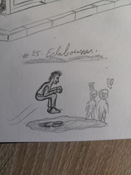 Et bah là j'ai mis du temps à avoir une idée et au final je me suis dis tiens un gamin qui saute dans une flaque d'eau avec des grosses chaussures. Donc je trouve mon brouillon mieux réussi que mon final mais l'idée est là, je n'ai pas passé un grand moment dessus non plus, j'avoue que cette semaine j'ai un peu du mal à me donner au dessin du coup je cherche à faire des dessins un pue plus rapidement. Encore une fois faut que j'apprenne à rendre mes personnages plus jeune ^^