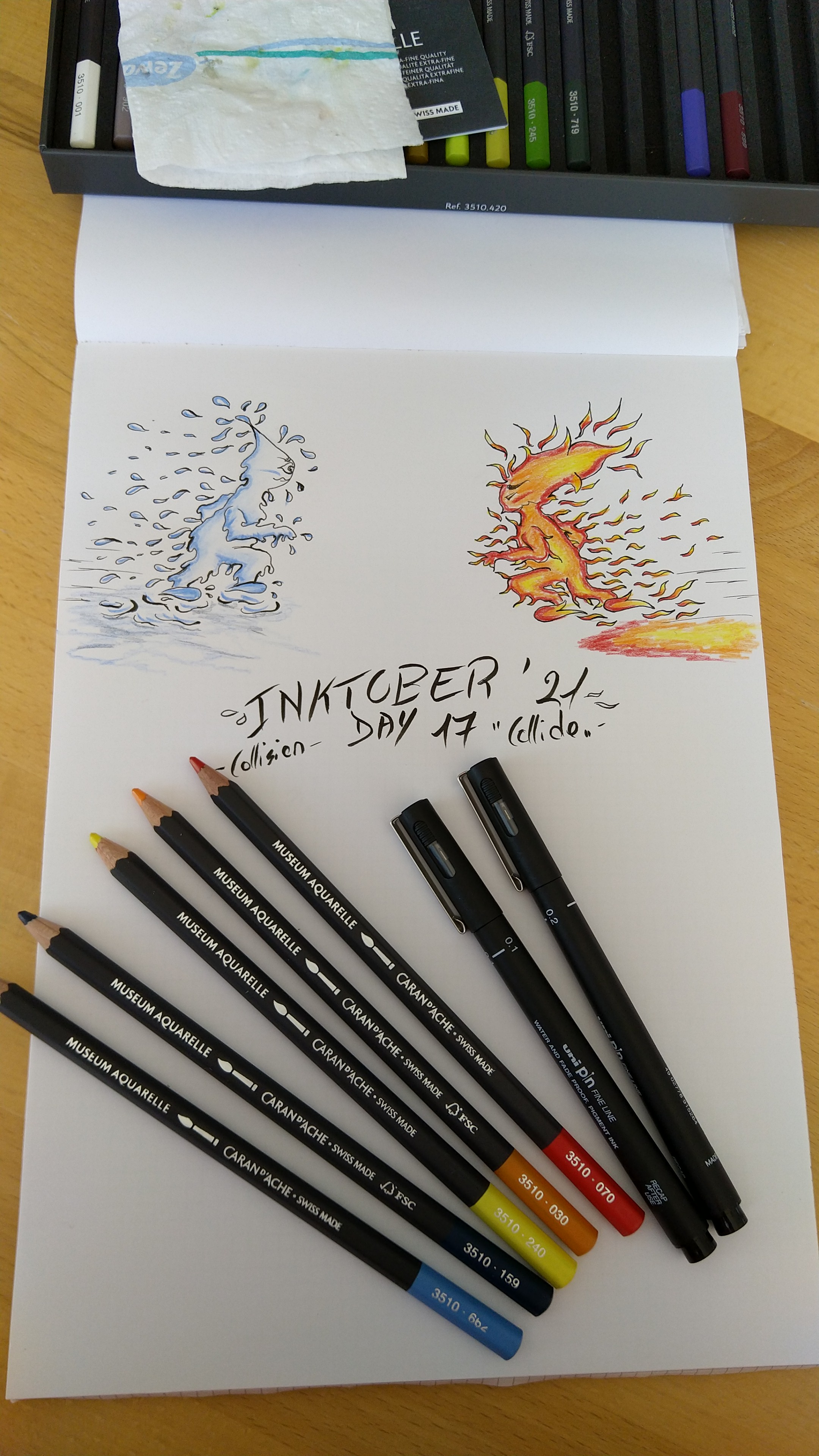 Je dois dire que sur le moment, quand j'ai commencé Inktober, je pensais juste progresser avec l'encrage, car chaque procédé à l'air du simple mais est bien moins facile qu'il n'y paraît !!!! Et puis, mon premier jour, j'ai eu envie de mettre juste un peu de couleur, et ensuite je me suis laissée totalement m'inspirer selon l'humeur du moment, puisque je n'ai rien anticipé, je prenais chaque jour le défi journalier...