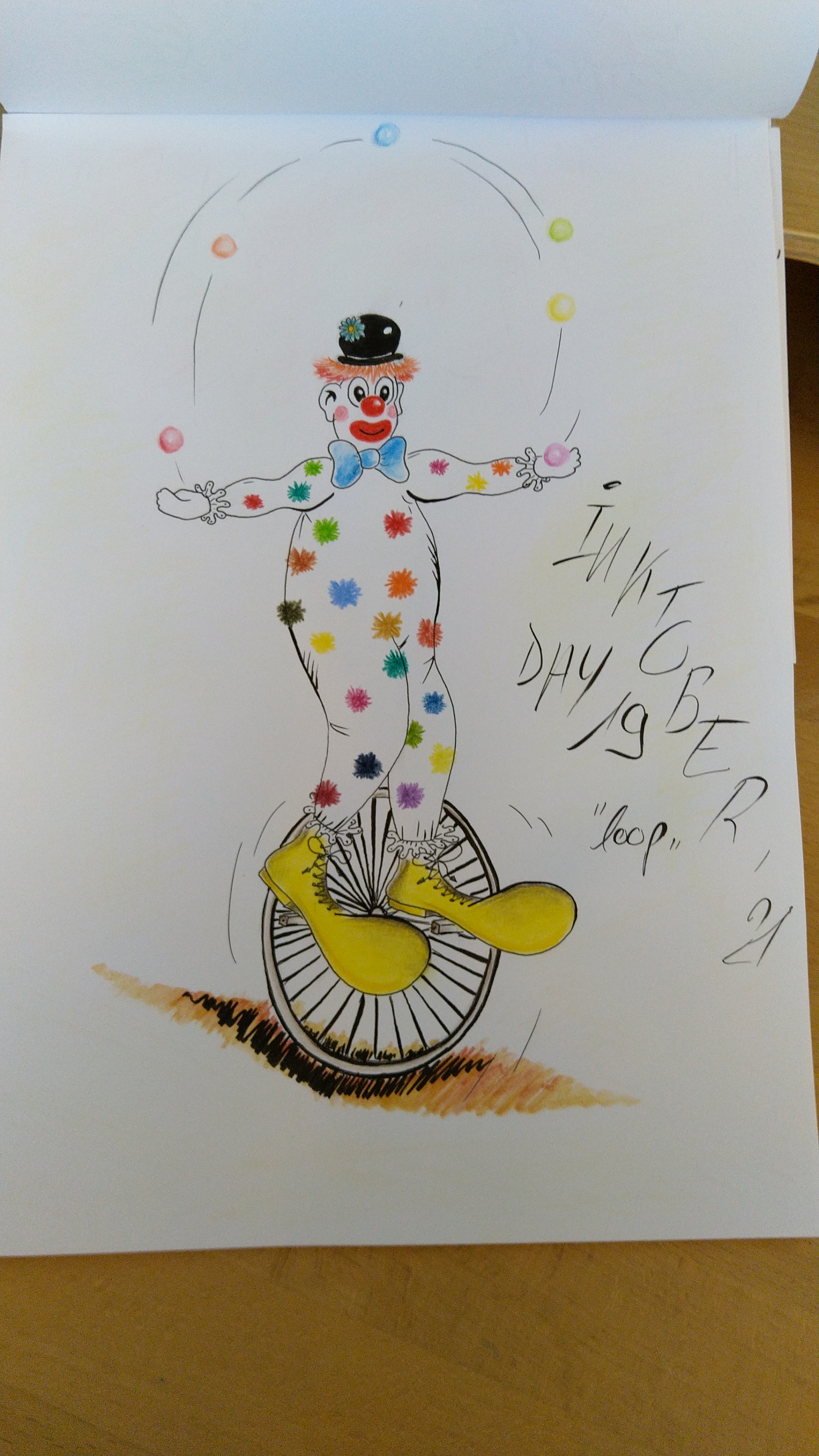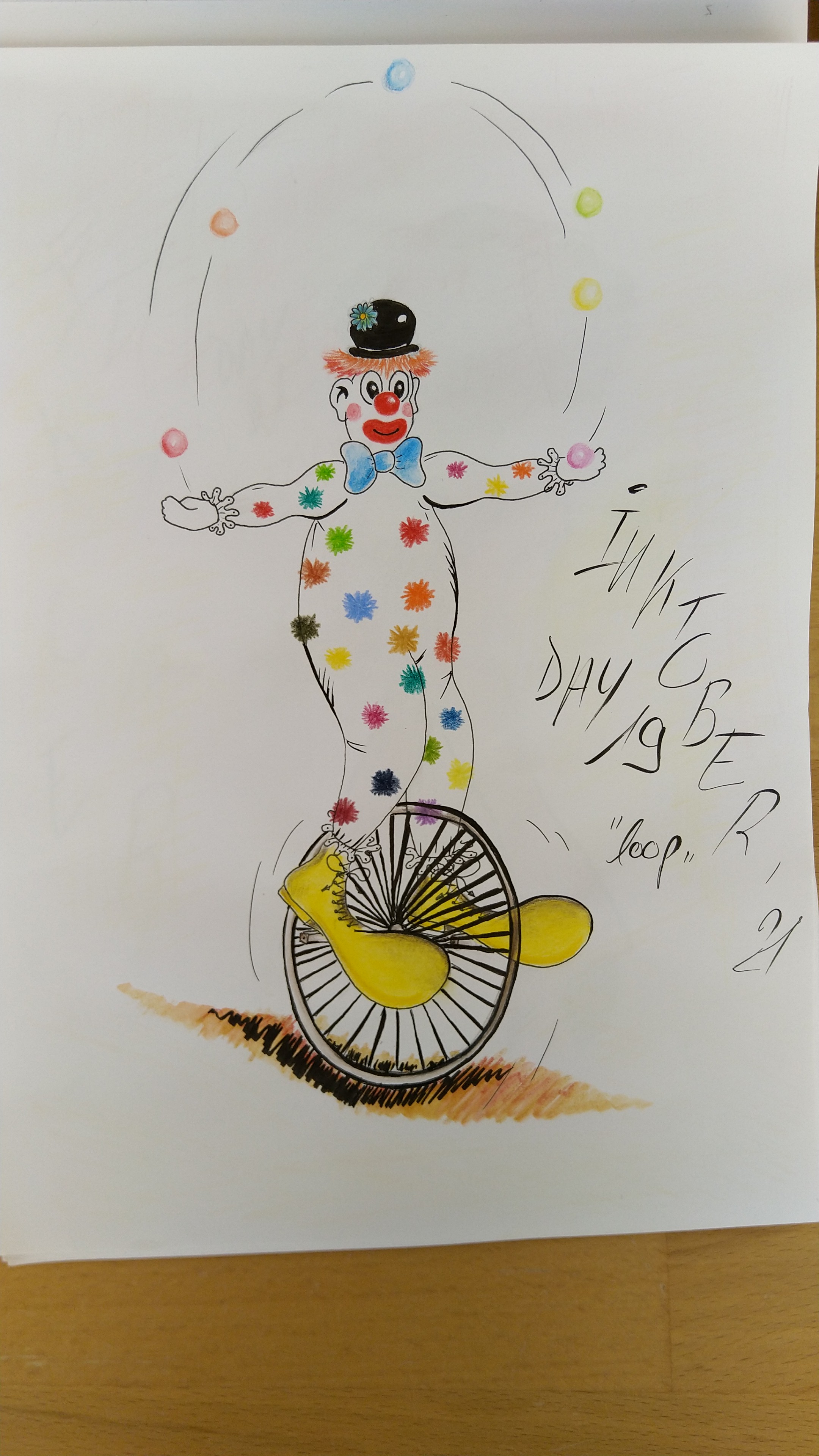 C'est le même gag que ma boussole, je ne voulais pas me foutre dedans à ne plus savoir quel trait va devant, et j'ai commencé à mettre la couleur alors que je n'avais pas fait le monocycle, donc double boulette, puisque j'ai coloré la chaussure complète !!!