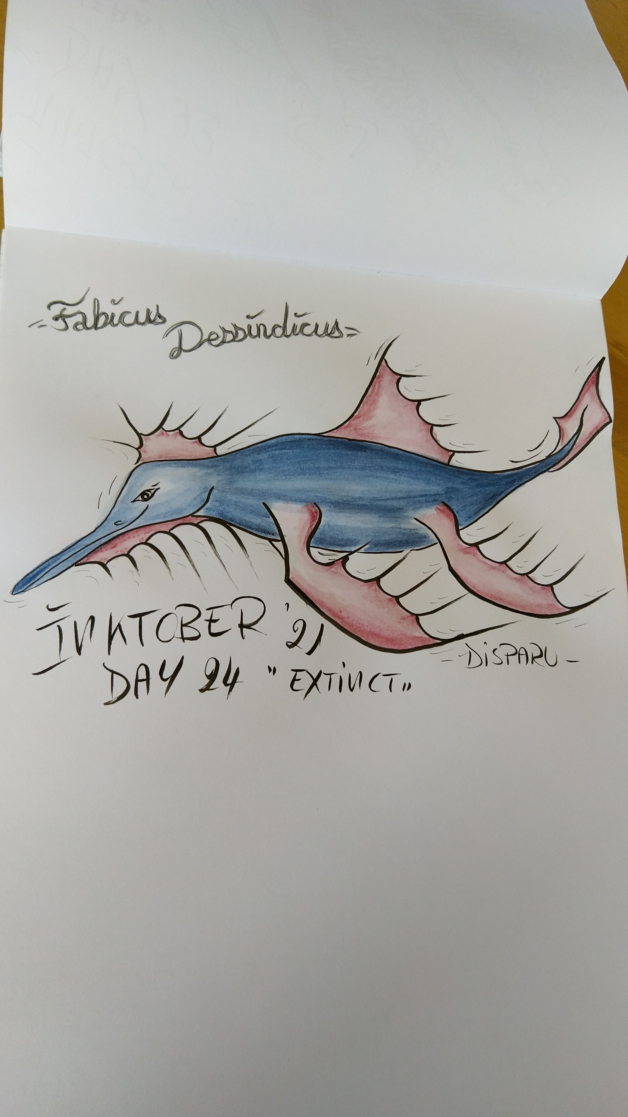 C'est vrai que j'ai tout de suite pensé à une espèce éteinte, et plutôt dans la préhistoire, mais oui, vu toutes les espèces en train de s'éteindre en ce moment, on aurait pu dessiner des baleines, des oiseaux.... 🙄 Si y avait le Marsupilami, les aras bleus seraient encore là !