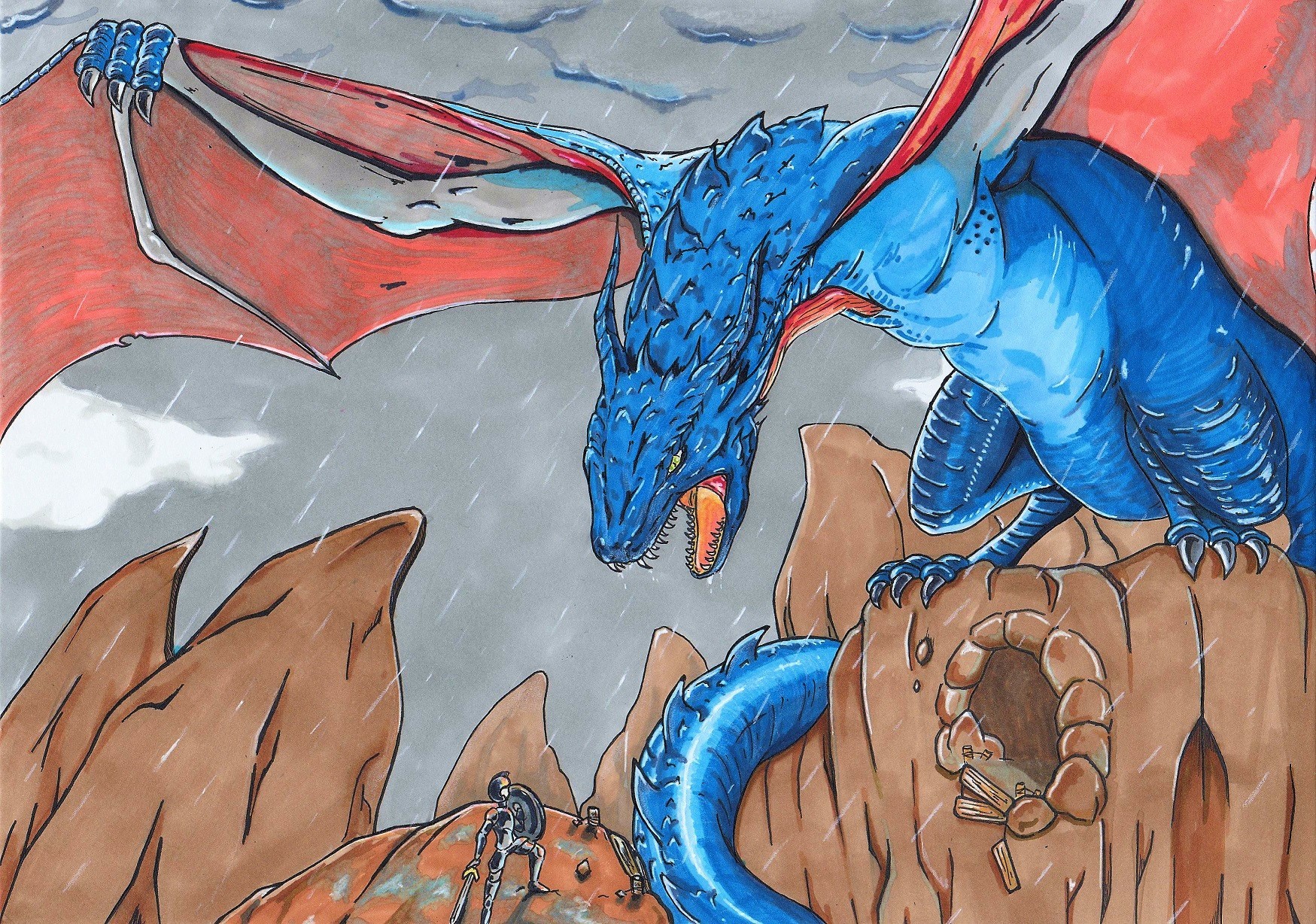 Sinon le but du dessin étais d'essayer mon matériel, travailler mon œil au niveau des compréhension de couleur, faire un effet de surbrillance avec le dragon et avec le fond noir crée une ambiance un peut dangereuse.
