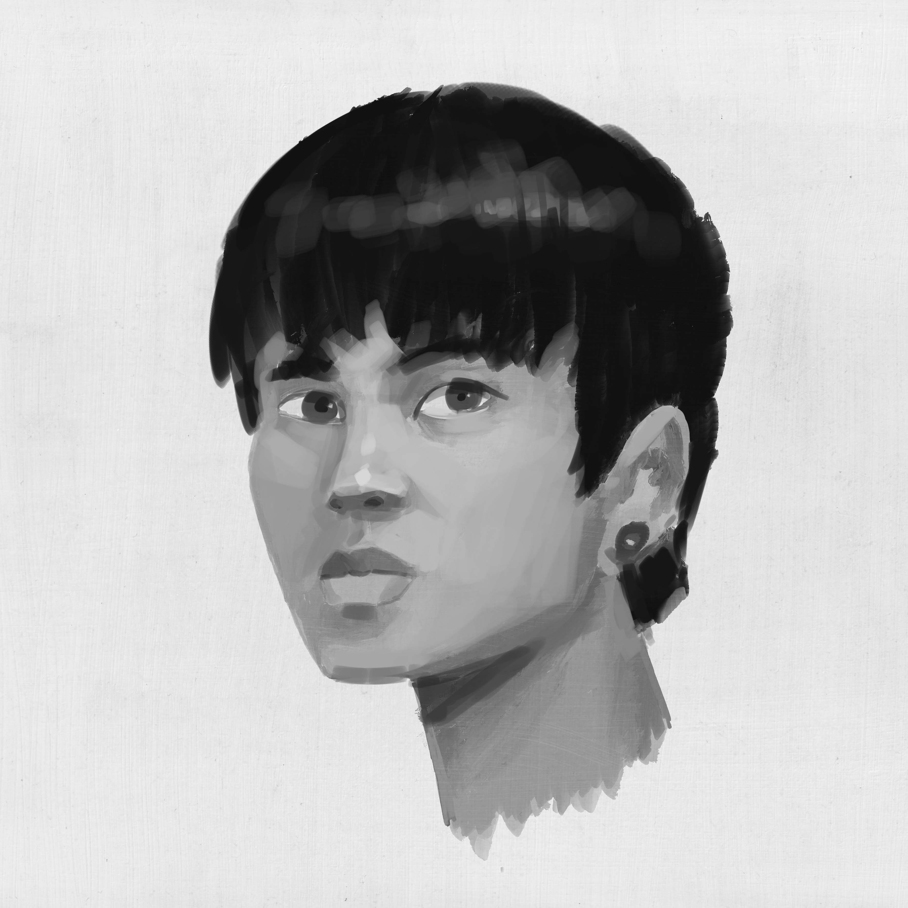 Voici ma contribution. Je cherche à avoir un rendu peinture, pas hyper réaliste. c'est la première fois que j'enlevais mes contours, ça fait bizarre la première fois. Je peins principalement des asiatiques car j'habite en Chine depuis 15 ans. Mon but est de faire des peintures digitales dans les style de Liu Xiao Dong, c'est à dire des portraits de gens dans leur milieu (genre ouvriers en train de bosser, vendeur dans son magasin ect.). Bon j'arrête de raconter ma life... ha ha !