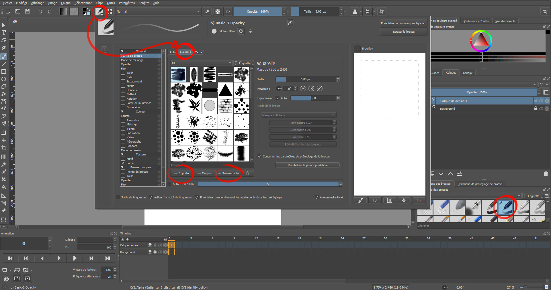 voila j'essaie de refaire l'exercice avec la correction et dans krita je ne trouve pas l'equivalent de ta brosse Maxime.