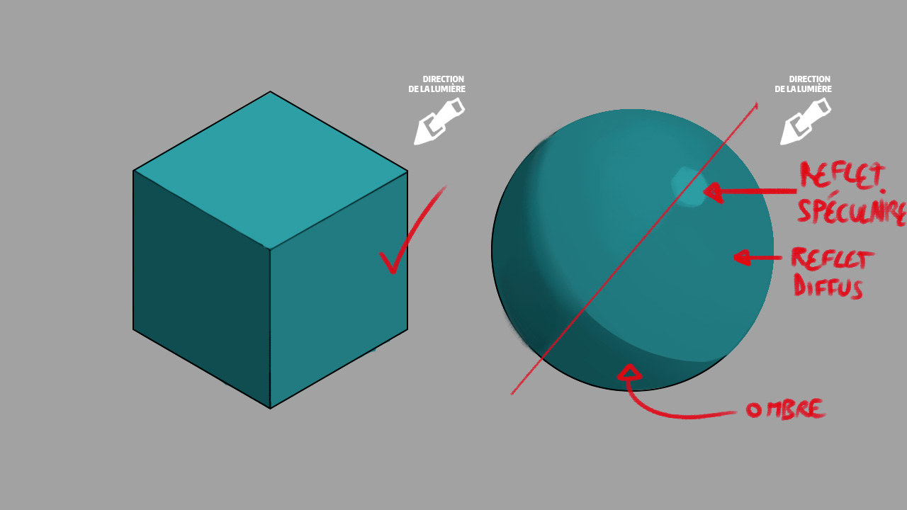 Même si tu peins une sphère de manière réaliste, tu ne verra pas un dégradé constant depuis le reflet speculaire, mais plutôt un reflet diffus qui ressemble preque à un aplat, avec un passage rapide de l'ombre à la lumière au niveau du terminator.