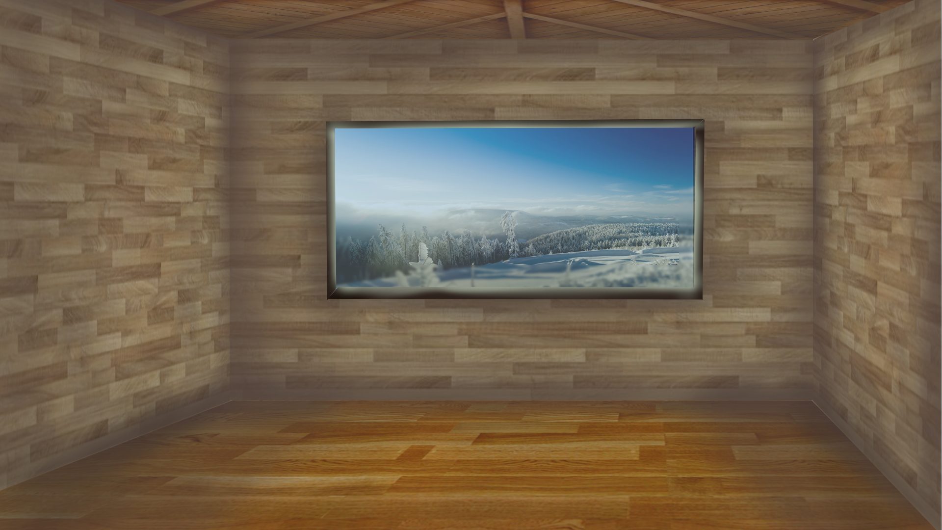 Je trouve ça pas mal du tout moi! La photo de paysage est bien, et pour intégrer le tout tu aurais pu mettre un peu plus de lumière au sol (vu que le paysage est très ensoleillé, une partie de la lumière serait entrèe par la fenêtre) mais les textures sont intégrées dans la perspective et l'image se tient.