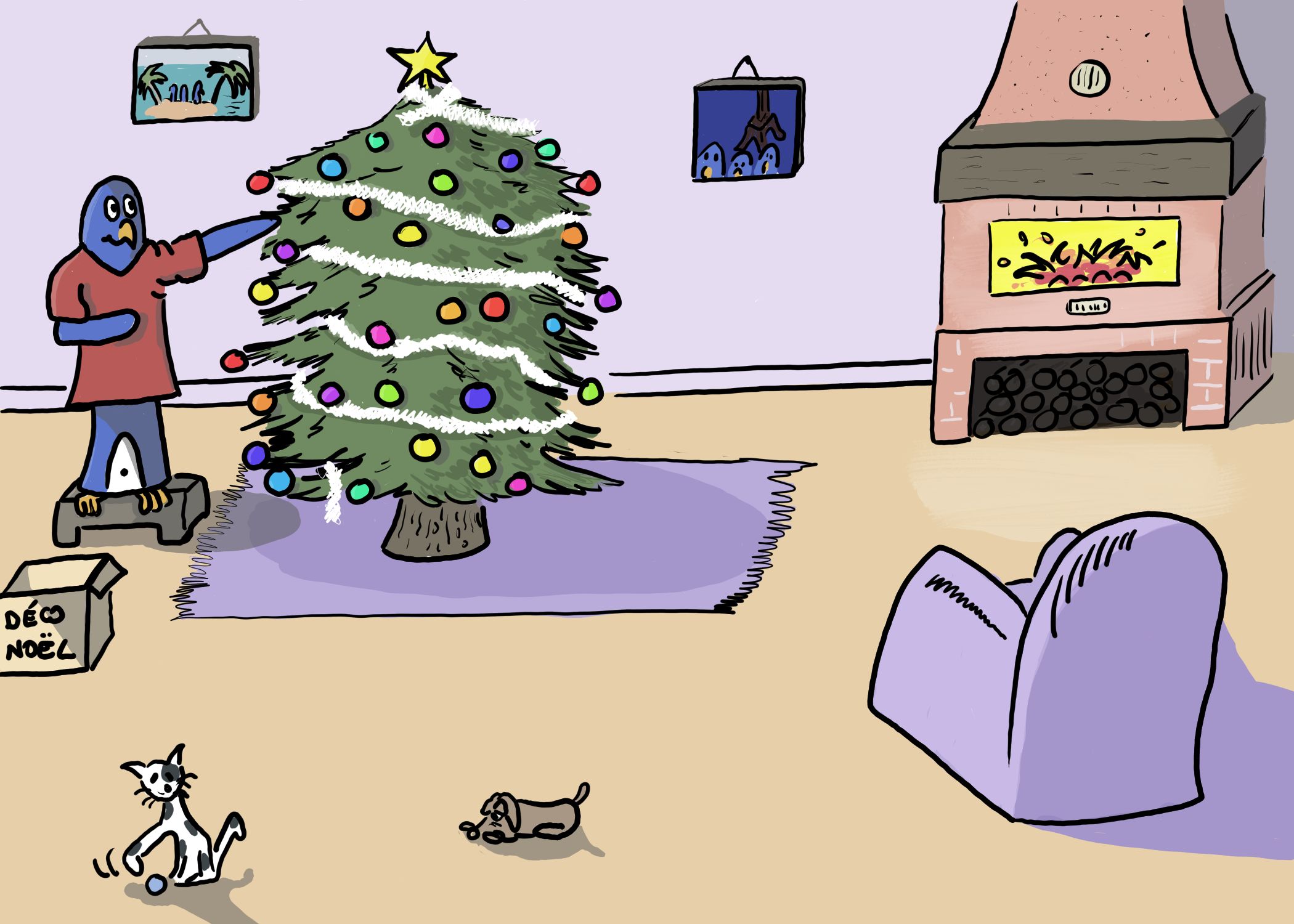 Pour parler ambiance de couleur, je trouve ici que ça manque de chaleur. Les couleurs semblent froides d'autant plus qu'il y a un feu de cheminée ! on devrait sentir la chaleur :)