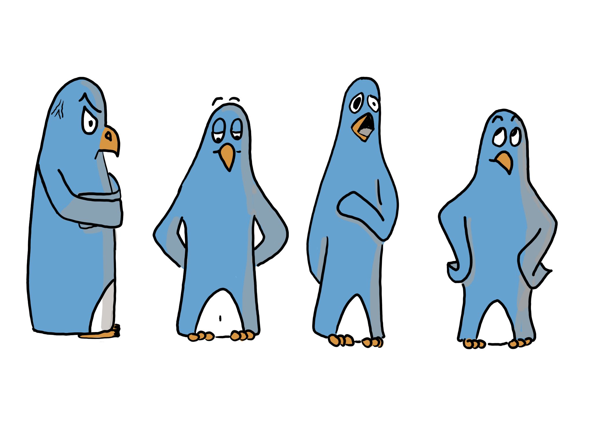 Merci pour tes retours. Ce sont bien des personnages differents que j ai voulu representer pour varier aussi leurs tailles et leurs carrures. J ai commence par celui de gauche, imposant et en colere, tourne vers le deuxieme un peu plus gringalet qui baisse les yeux, un peu honteux. Et j ai enchaine avec les deux autres. C est effectivement complique de faire les memes personnages de la meme taille et parfois de la meme forme.