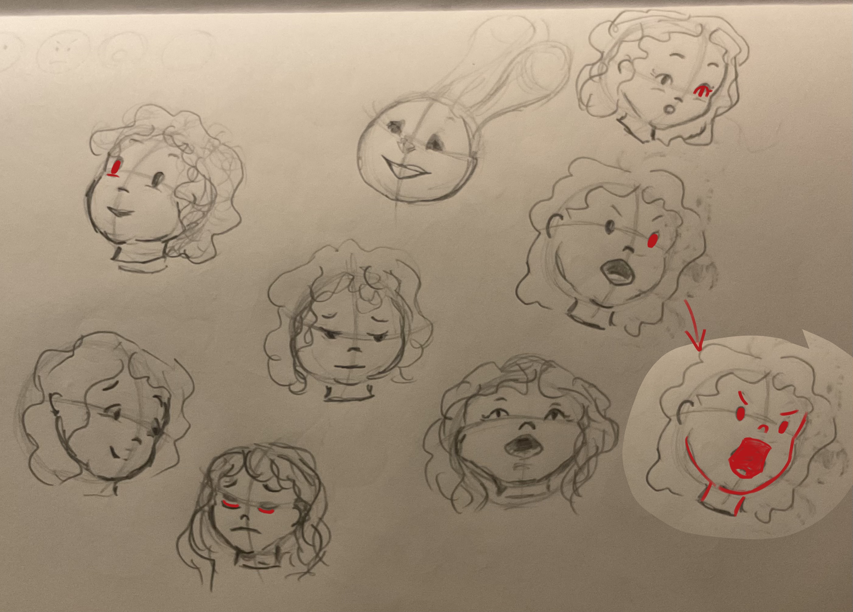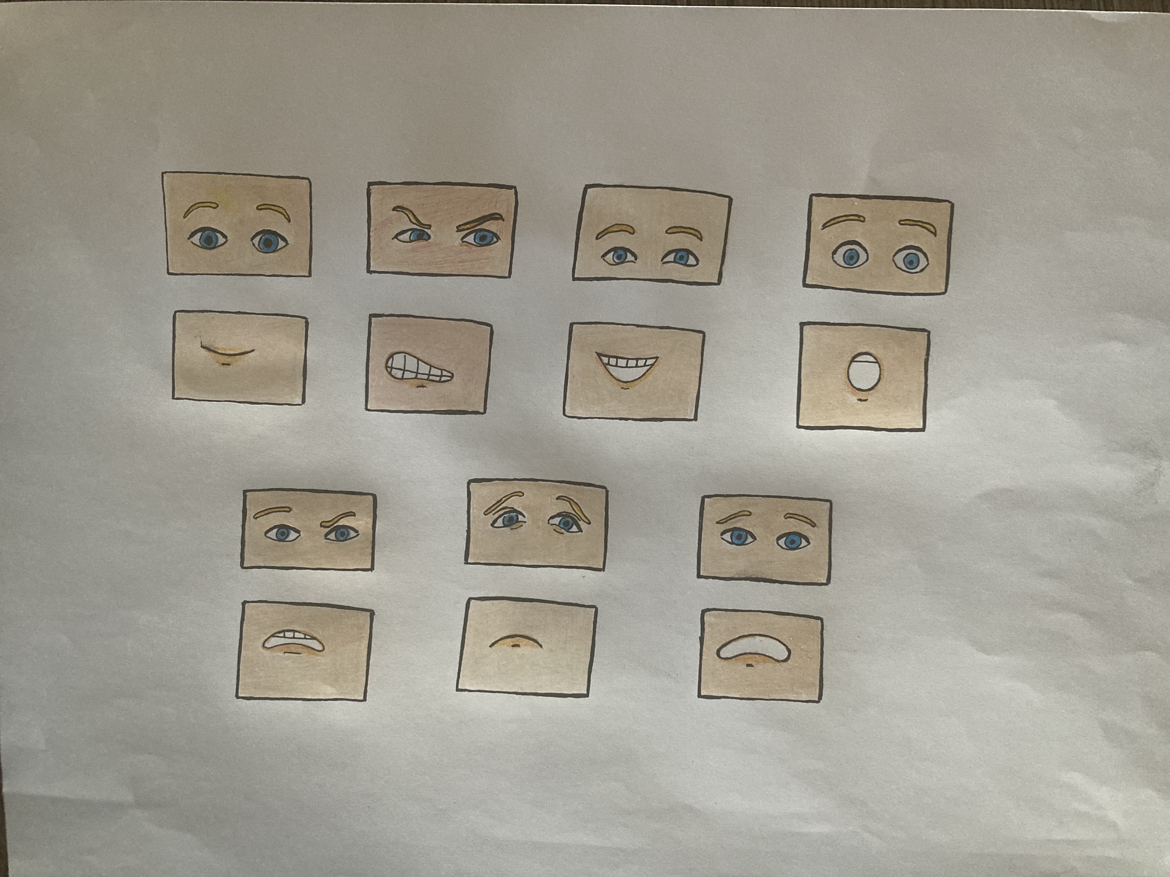 Je me suis amusée à créer différents yeux, bouches avec expressions colère, joie, tristesse, etc.