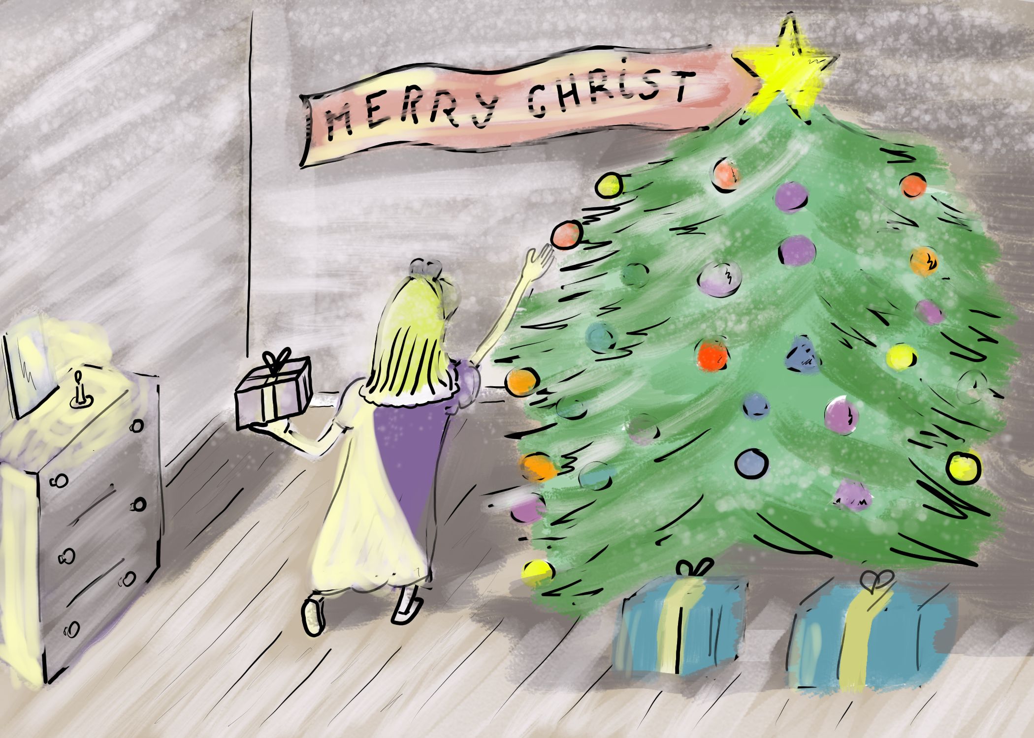 Tu sembles avoir pris du plaisir à dessiner les guirlandes et le sapin !