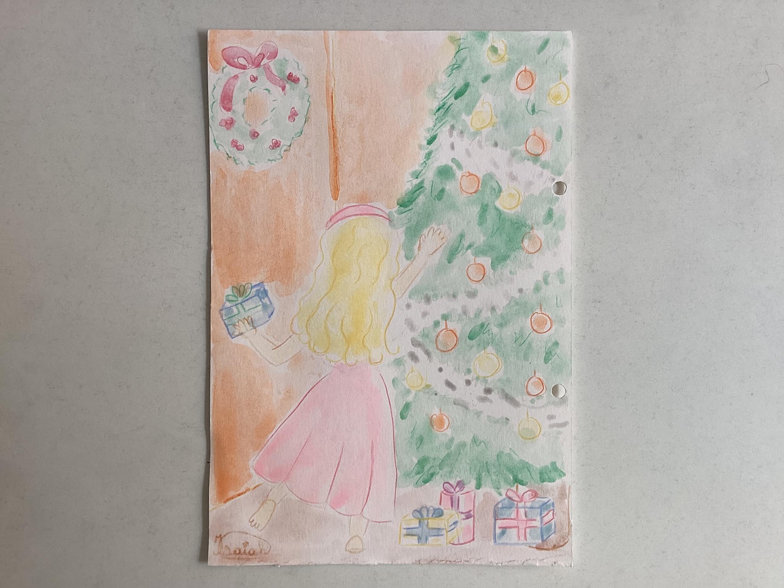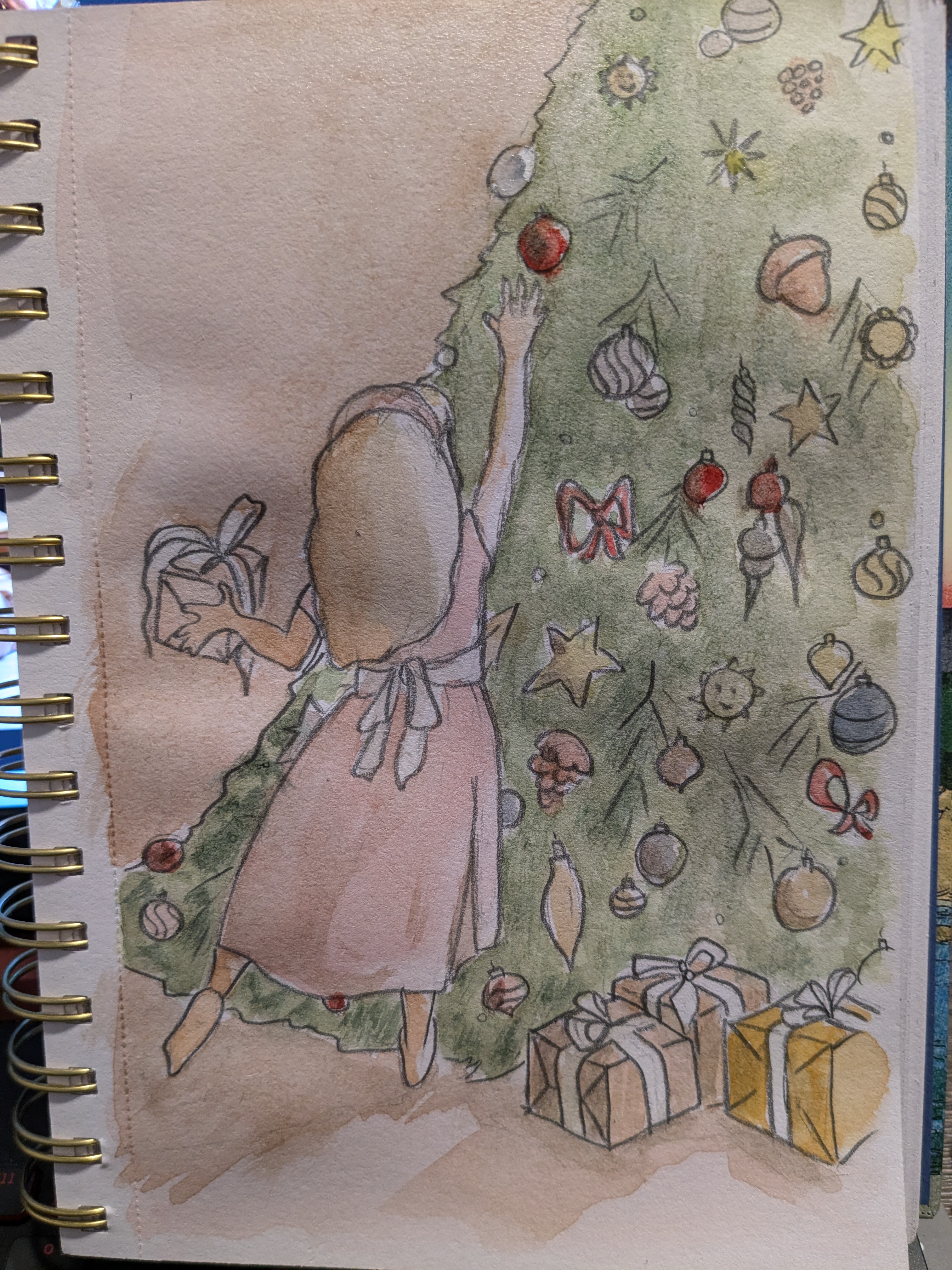 Ton illustration est charmante ! J'aime beaucoup la façon dont tu as appliqué la couleur, c'est tout à fait approprié pour le style que tu as choisi. J'ai cependant une petite remarque : dans le style de référence, je remarque une préférence pour les tons légèrement plus opaques. Si tu le souhaites, tu peux faire l'ajustement en numérique pour voir la différence.