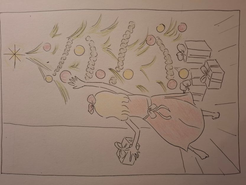 J'ai essayé de rester simple, en ajoutant du mouvement. Pour la couleur quelques touches de crayon, je ne voulais pas en mettre partout.