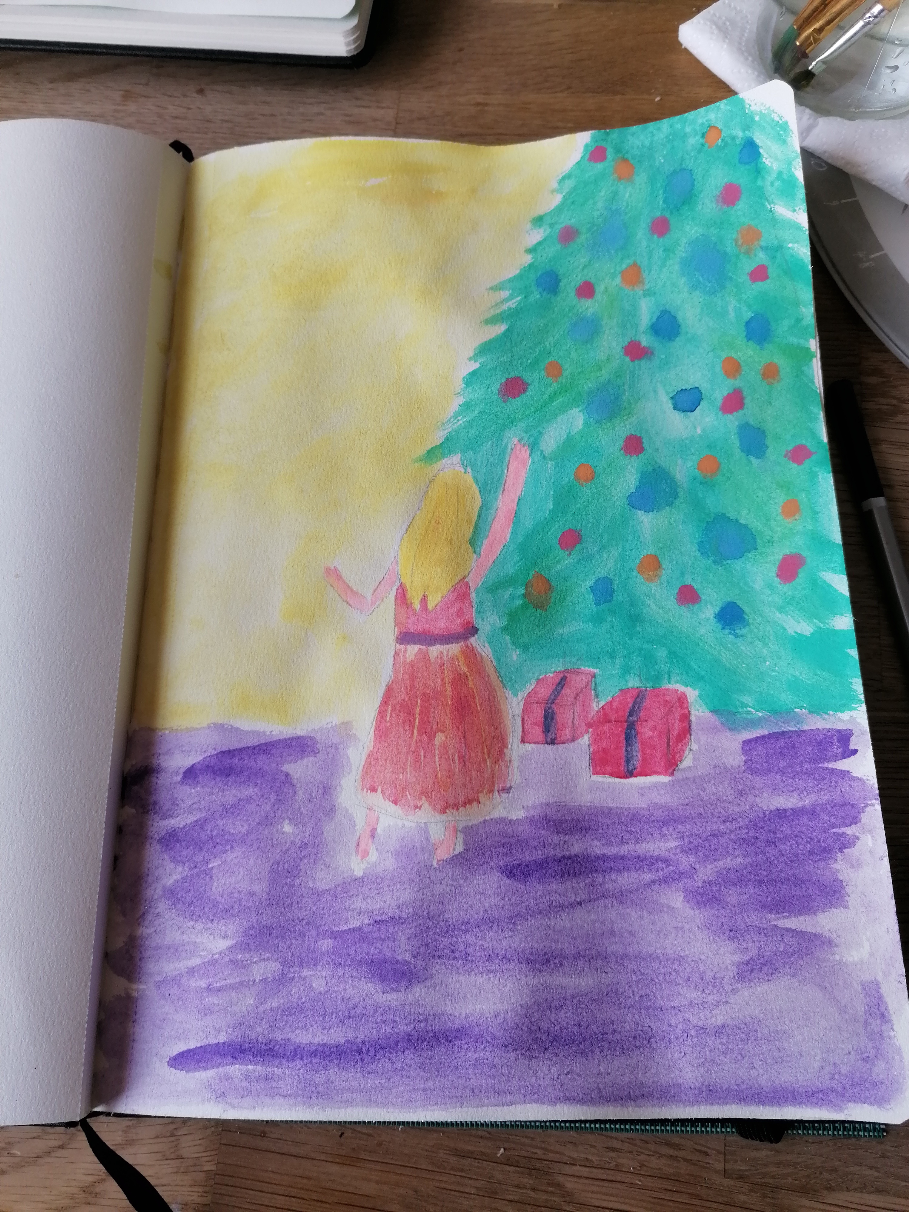 ton aquarelle est géniale !! L'ensemble est doux et detaillé, avec une atmosphère générale très chaleureuse, un plaisir pour les yeux, bravo !! 😀