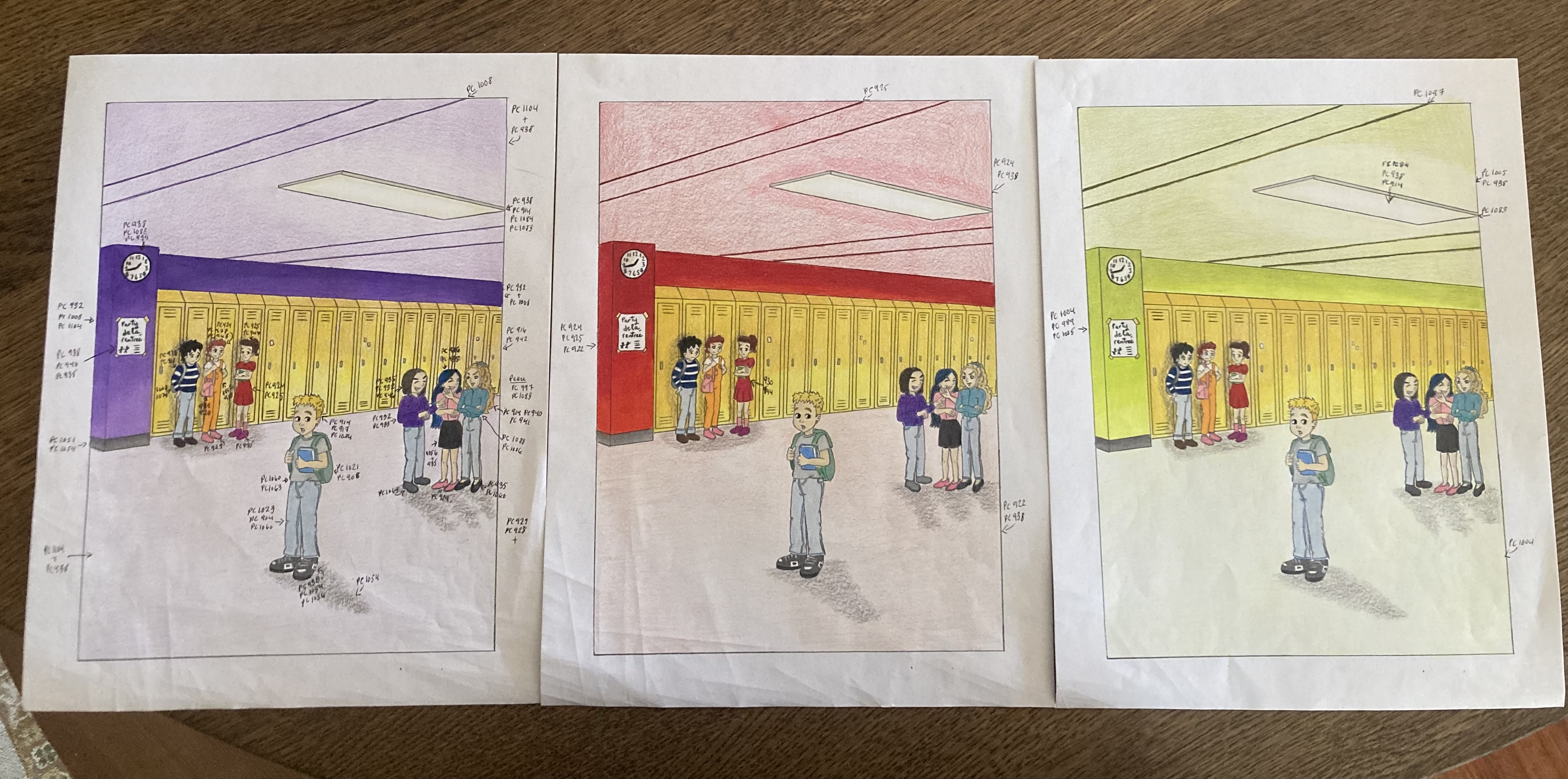 Je viens de réaliser un croquis de mon illustration avec couleurs. Qu'en pensez-vous?
