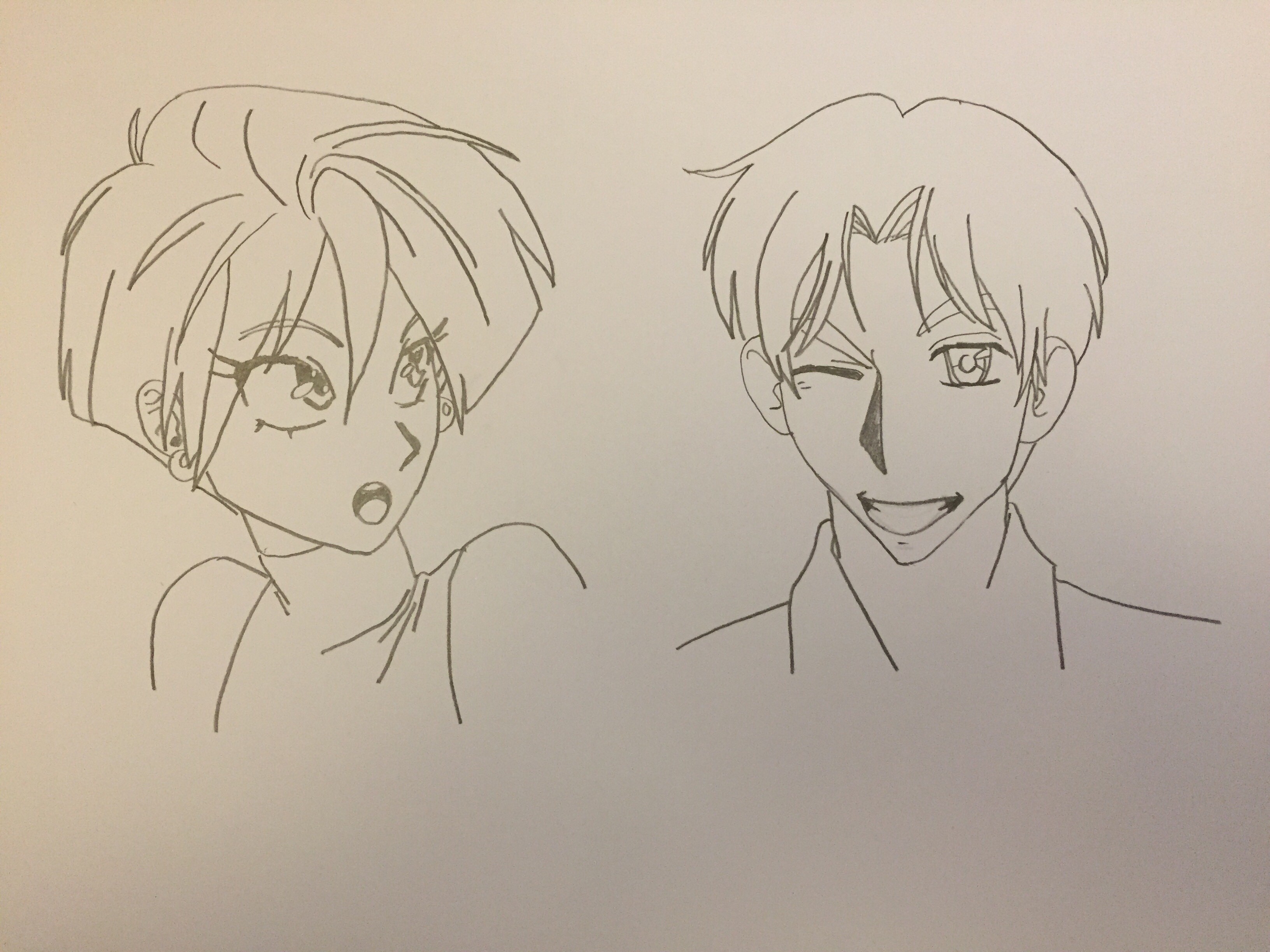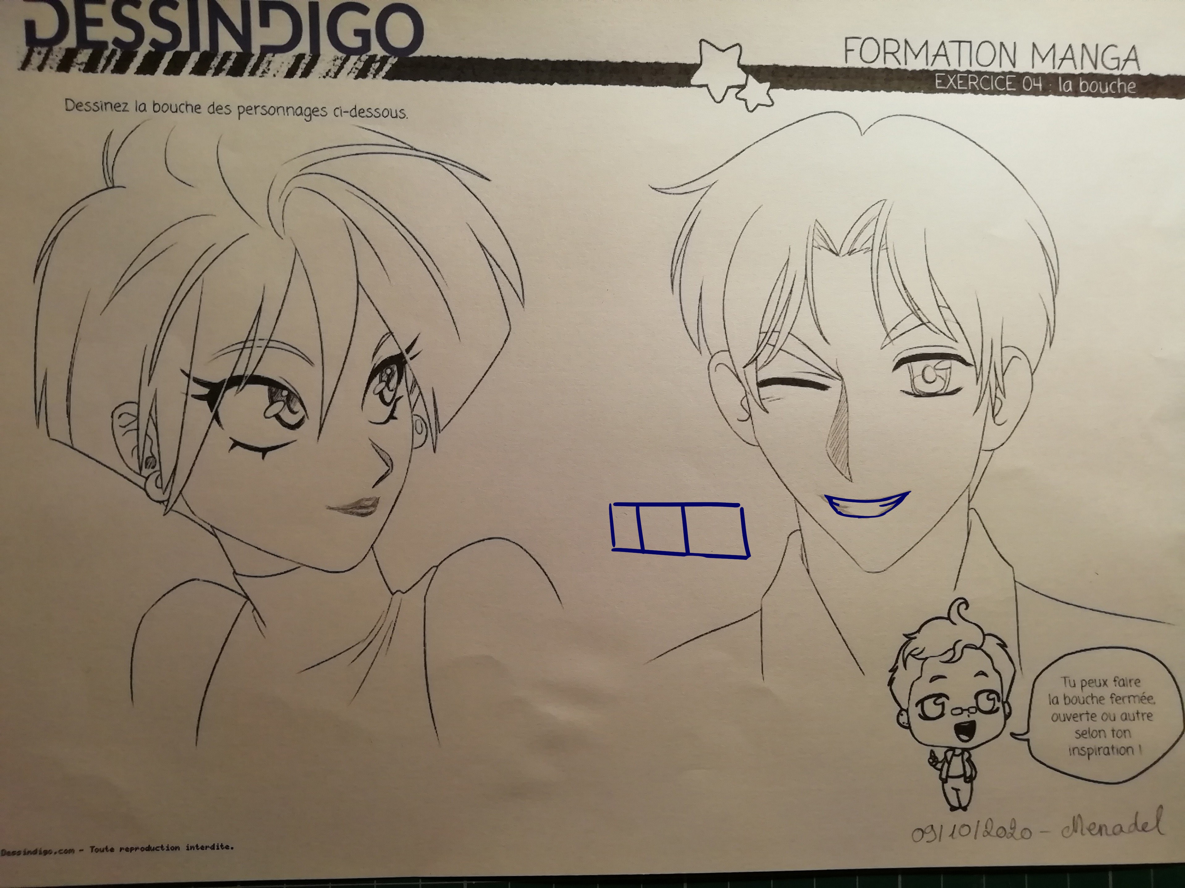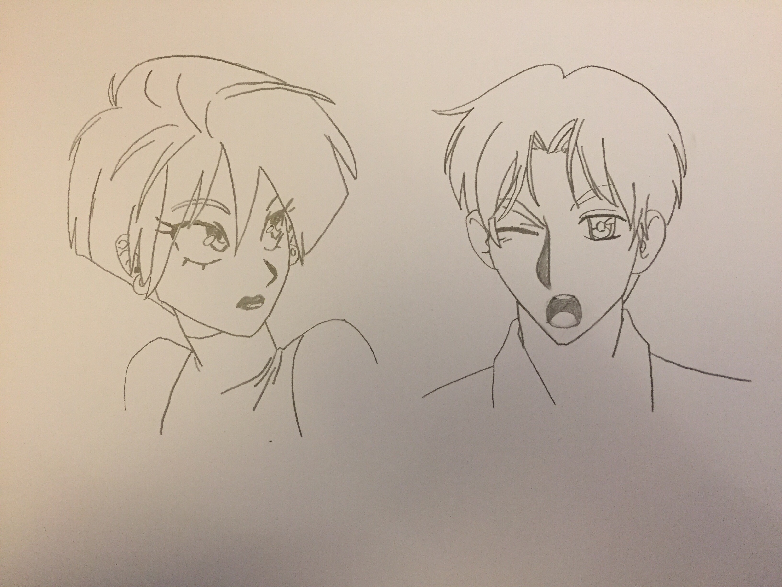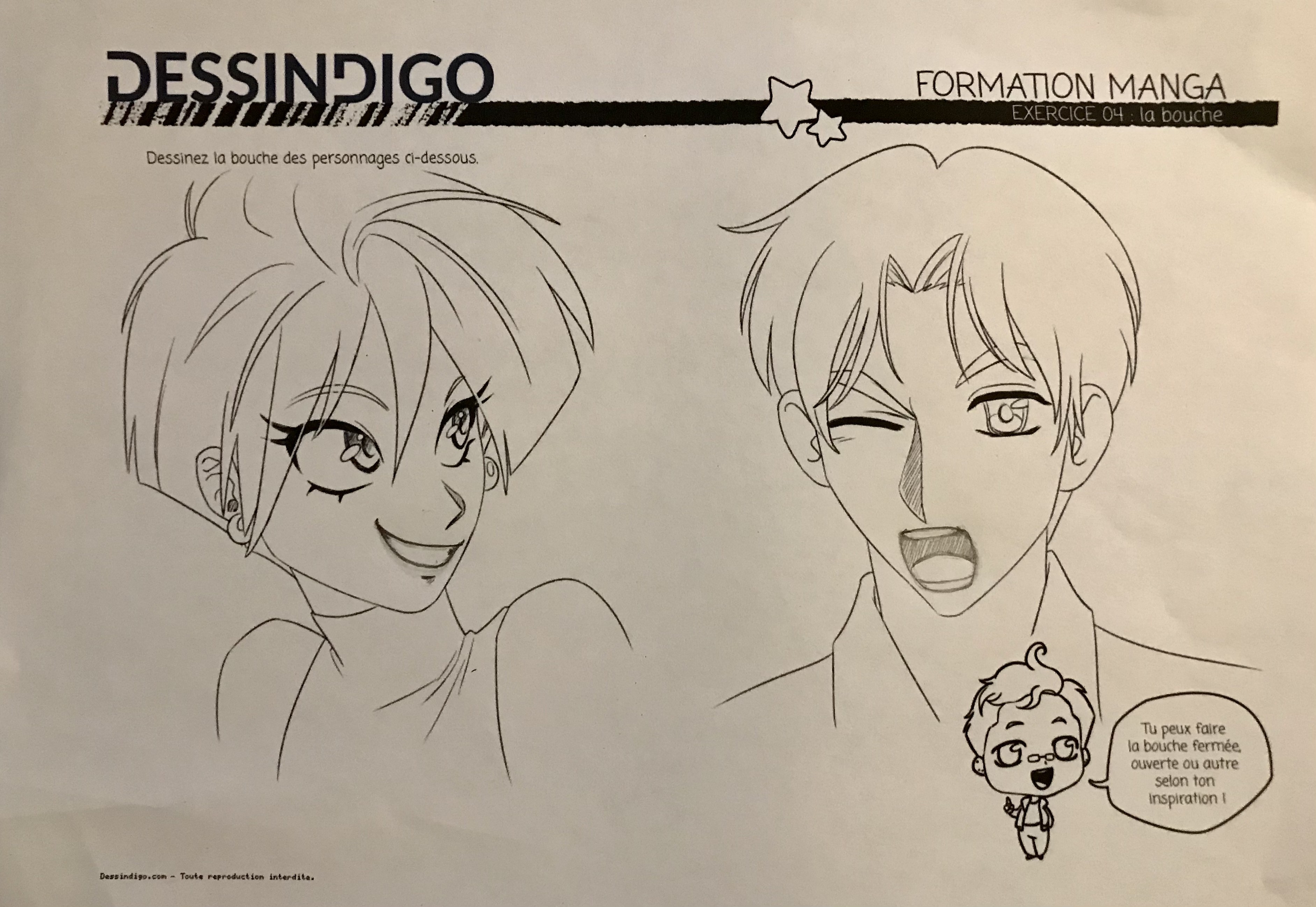 Sur la deuxième image, c'est un poil plus compliqué. Pour la demoiselle, j'ai l'impression que sa bouche est trop grande et trop inclinée et pour l'homme, si tu avais dessiné le personnage plutôt que de reprendre la base que j'ai donnée, tu aurais pu allonger son visage légèrement. Il ouvre la bouche, donc ses mâchoires s'écartent et son visage s'allonge (pareil, le miroir est utile pour observer ça dans la vraie vie). Dans le style manga on peut tricher et faire "déborder" la bouche du visage carrément, donc en soi ça fonctionne, perso j'aurais allongé un peu le visage, mais c'est subjectif pour le coup. Le dessin de la bouche fonctionne très bien tel quel :3