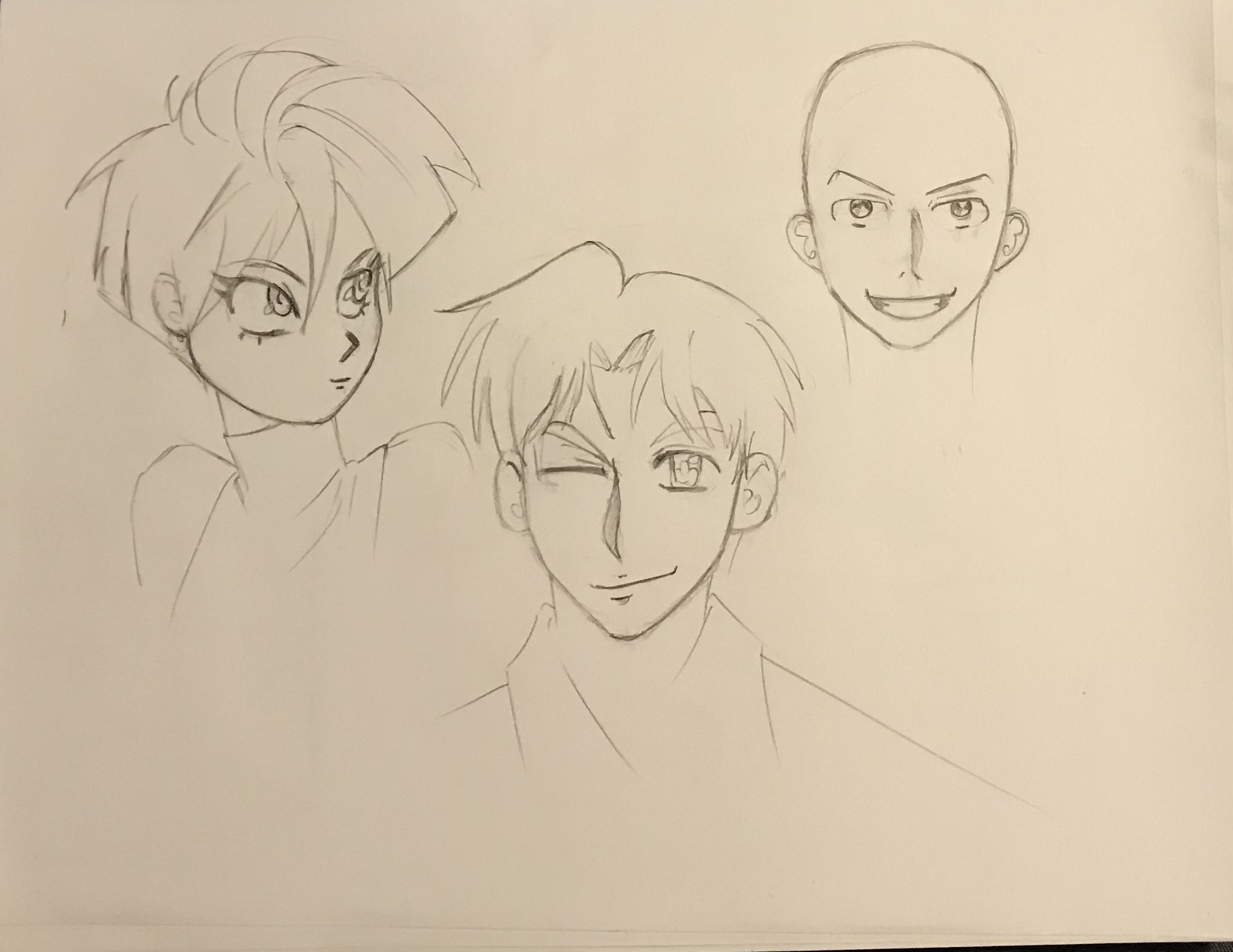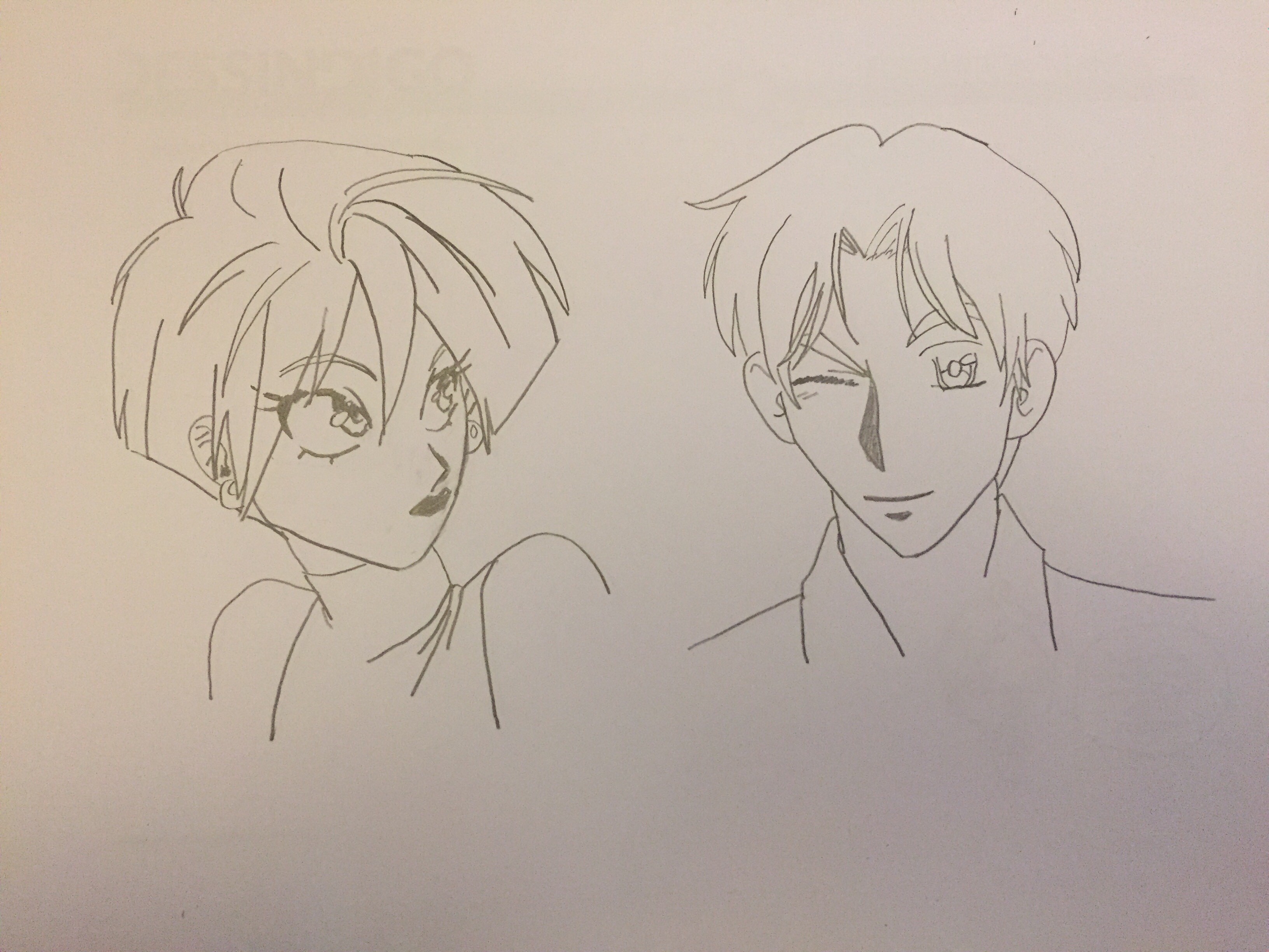 Pour le garçon, je t'ai fait une correction, car telle que tu as fait la bouche ici, ça enfreint une règle de perspective (je t'ai fait un petit croquis à côté).