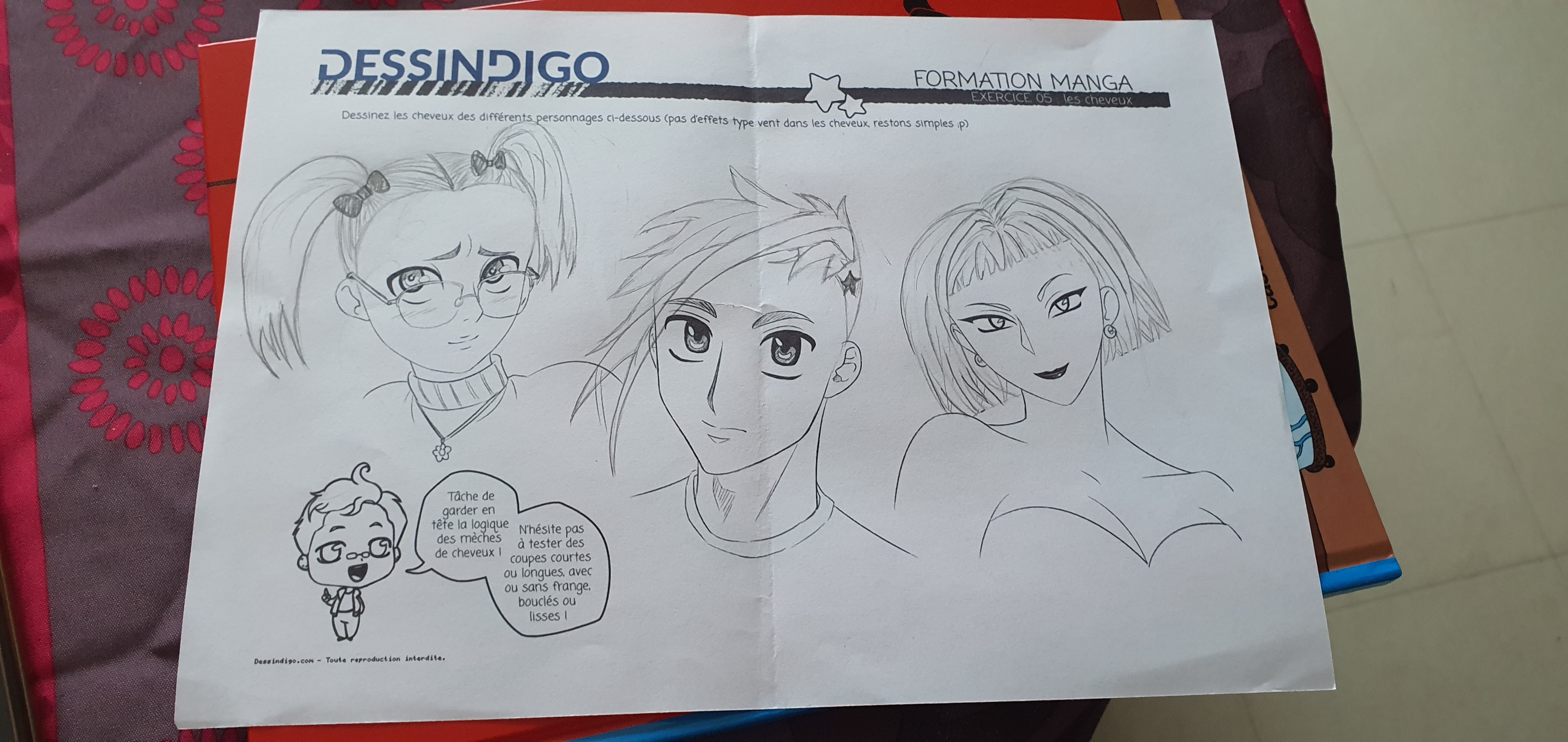 Franchement, c'est super dur les cheveux, et ca m'a clairement decourager pour la suite de la formation et j'ai pas pris de plaisir avec les elements que j'avais en ma possession pour faire l'exercice.