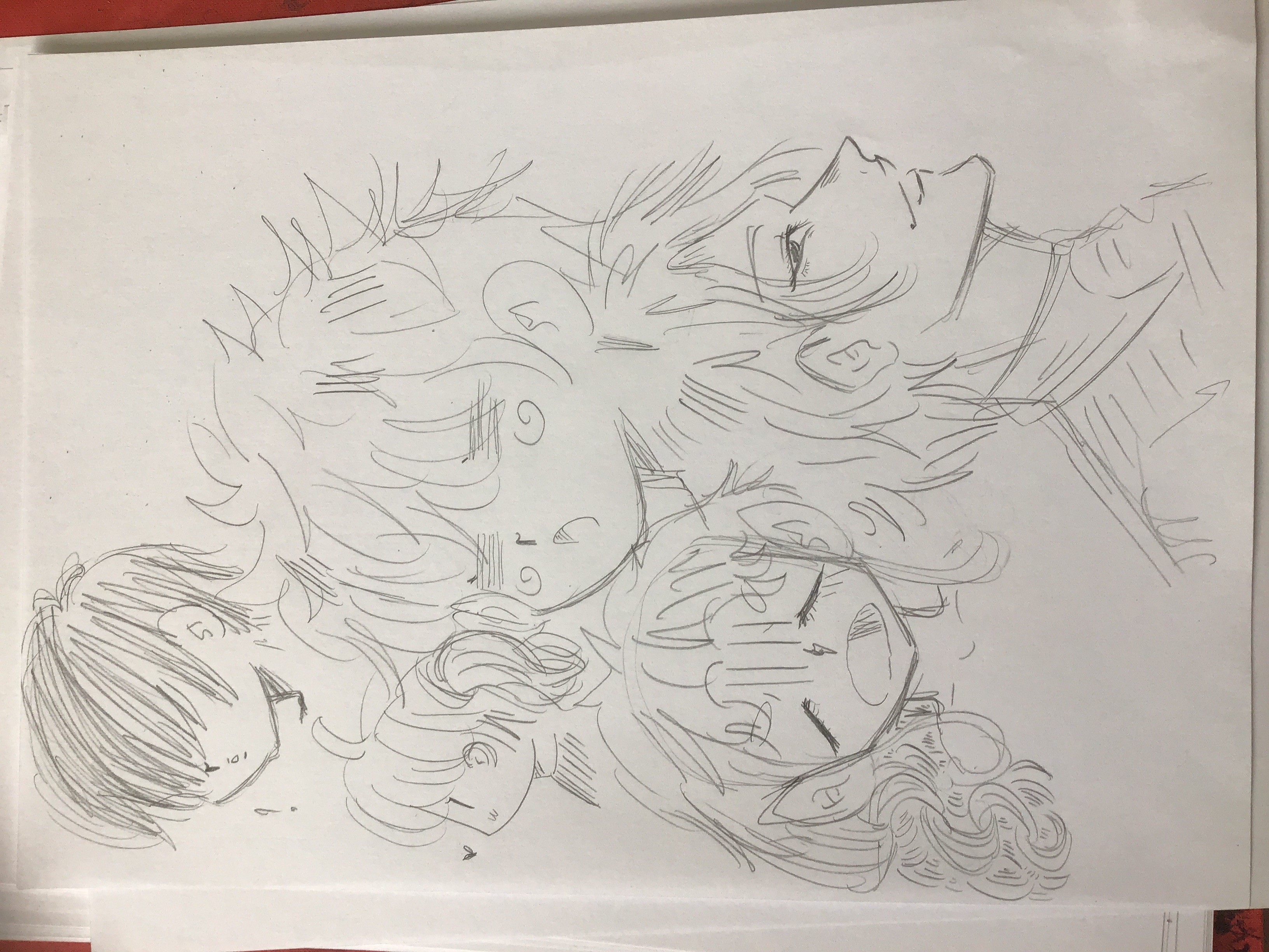 En fait le souci que tu as, c'est que tes personnages manquent de crâne. Le garçon pas grand-chose, les filles un peu plus. Par contre, tu as bien saisi la logique des mèches de cheveux, tu as bien su quels traits garder ou pas, on sent du volume et on voit bien que ce sont des cheveux :D