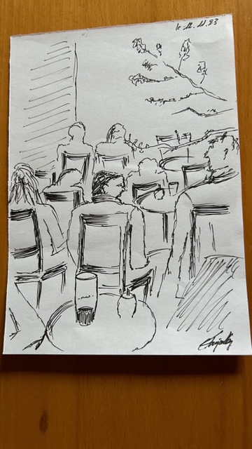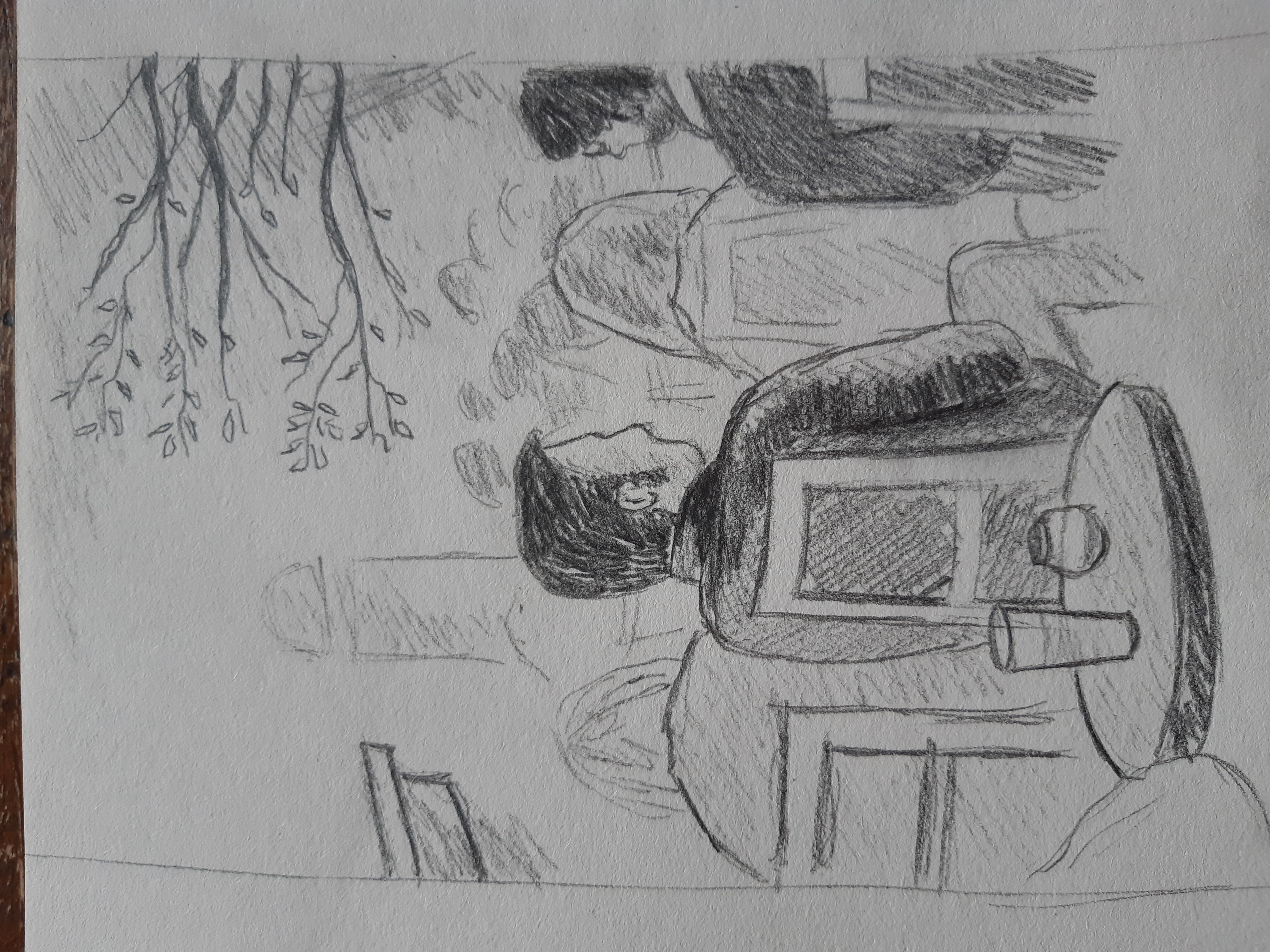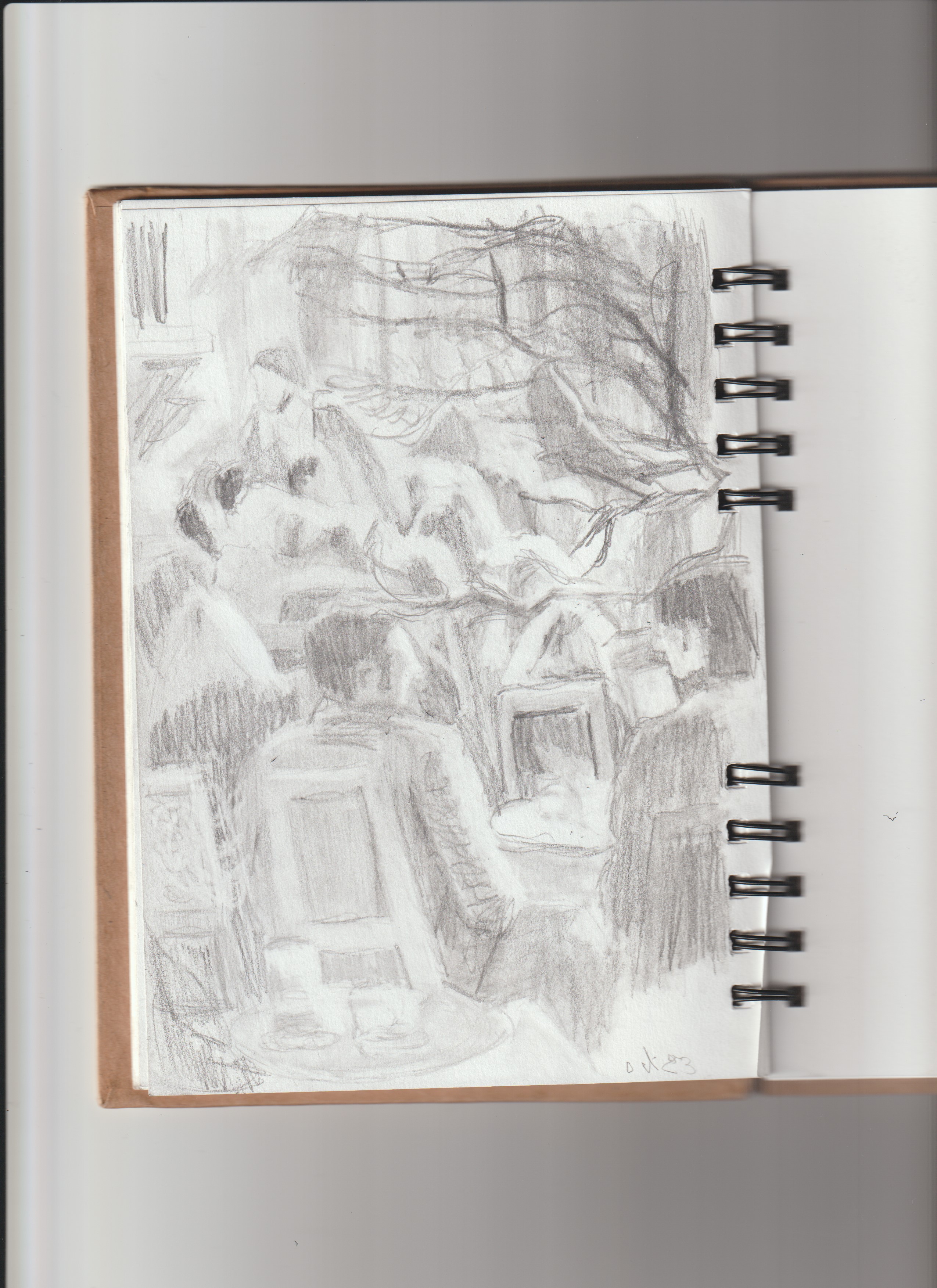 Le truc qui peut vous tracasser c'est l'effet 2D / plat. Ca manque de profondeur, de volume. On le voit surtout sur les personnages assis. La chaise est collée à leur dos comme une feuille de papier. Prenez juste ce détail, et observez mieux quitte à décalquer la photo :)