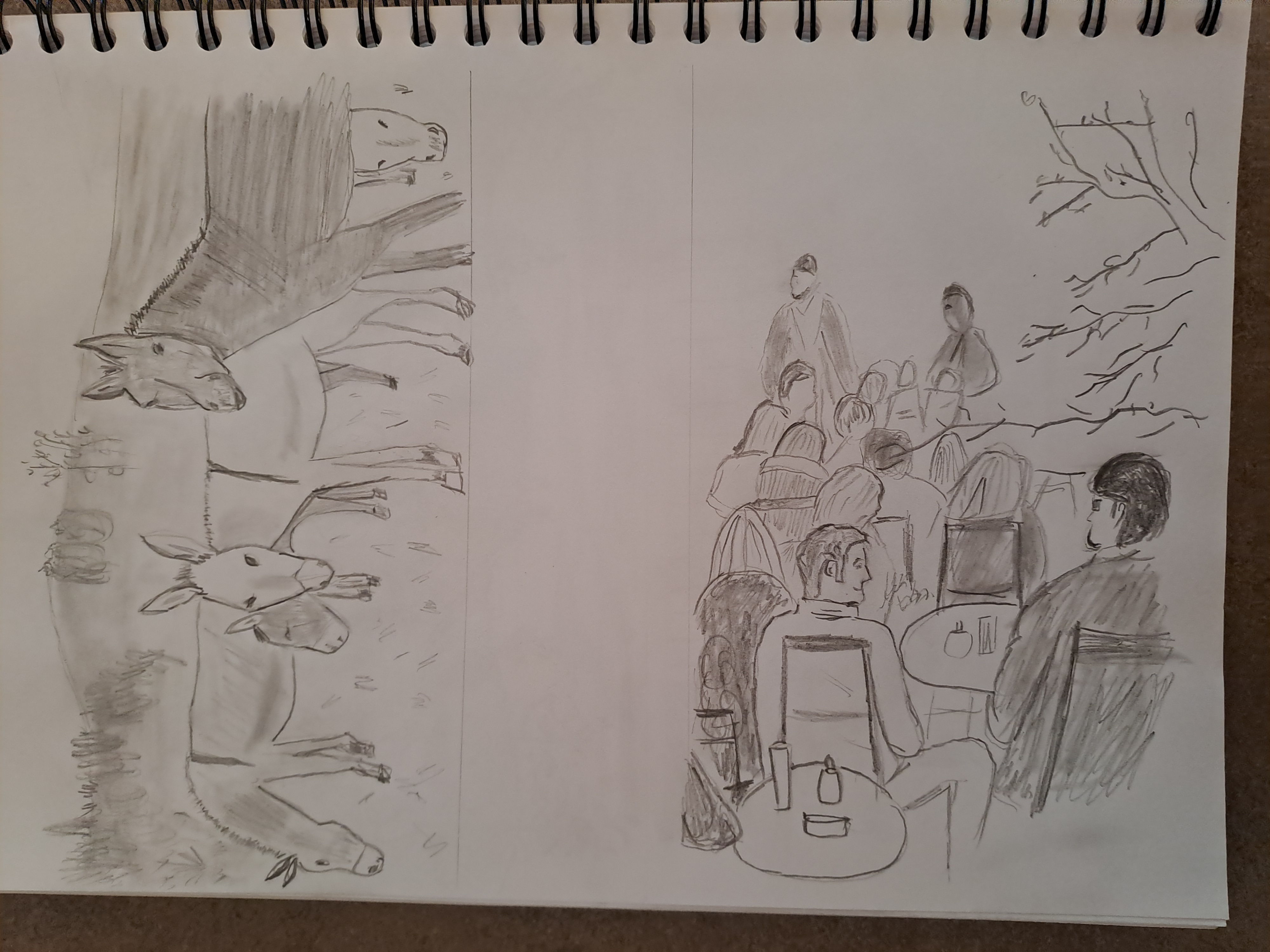 voici mes 2 esquisses "vite fait". Je ne suis pas du tout satisfaite du résultat, mais tant pis, je me jette à l'eau ;)