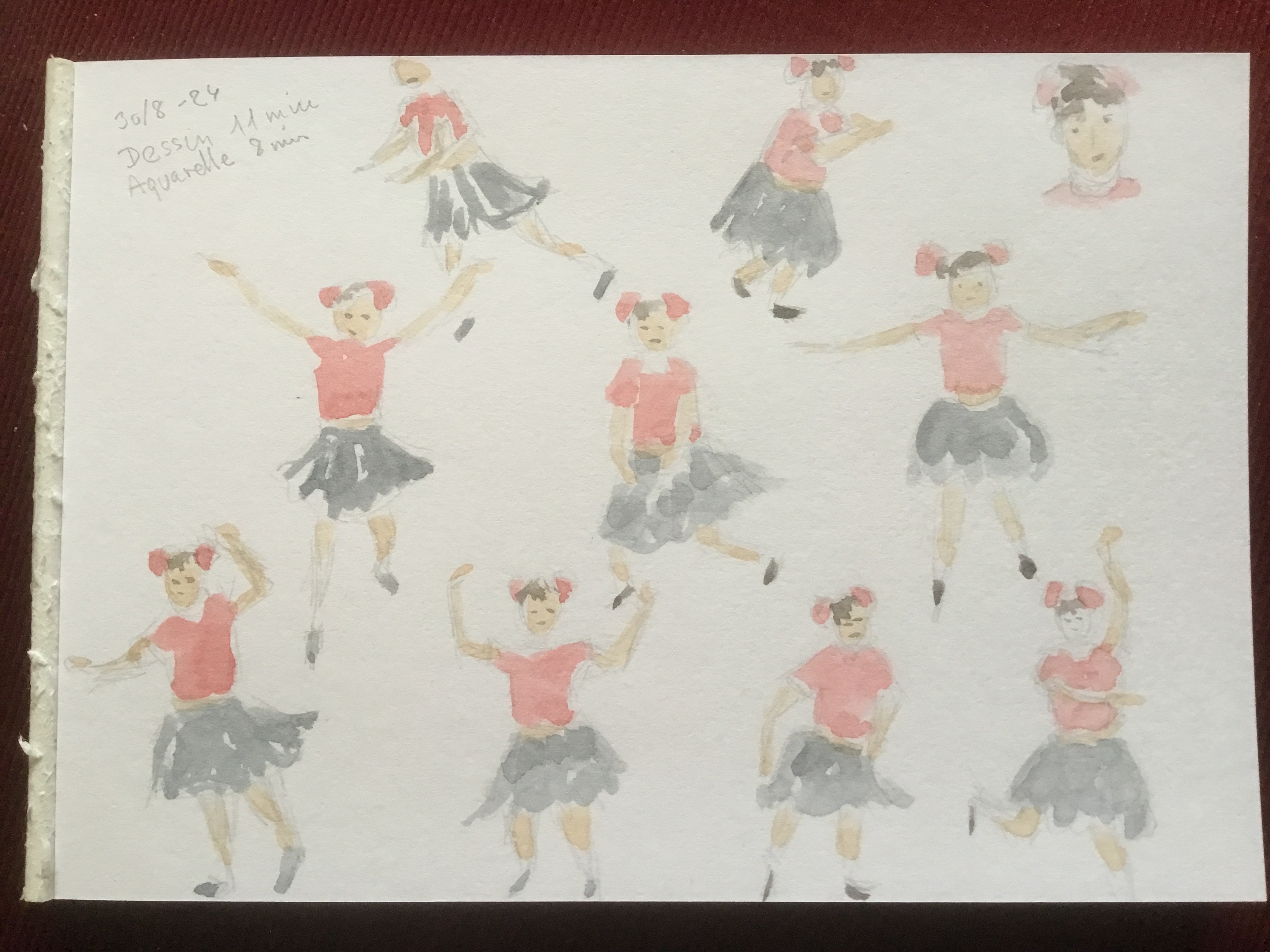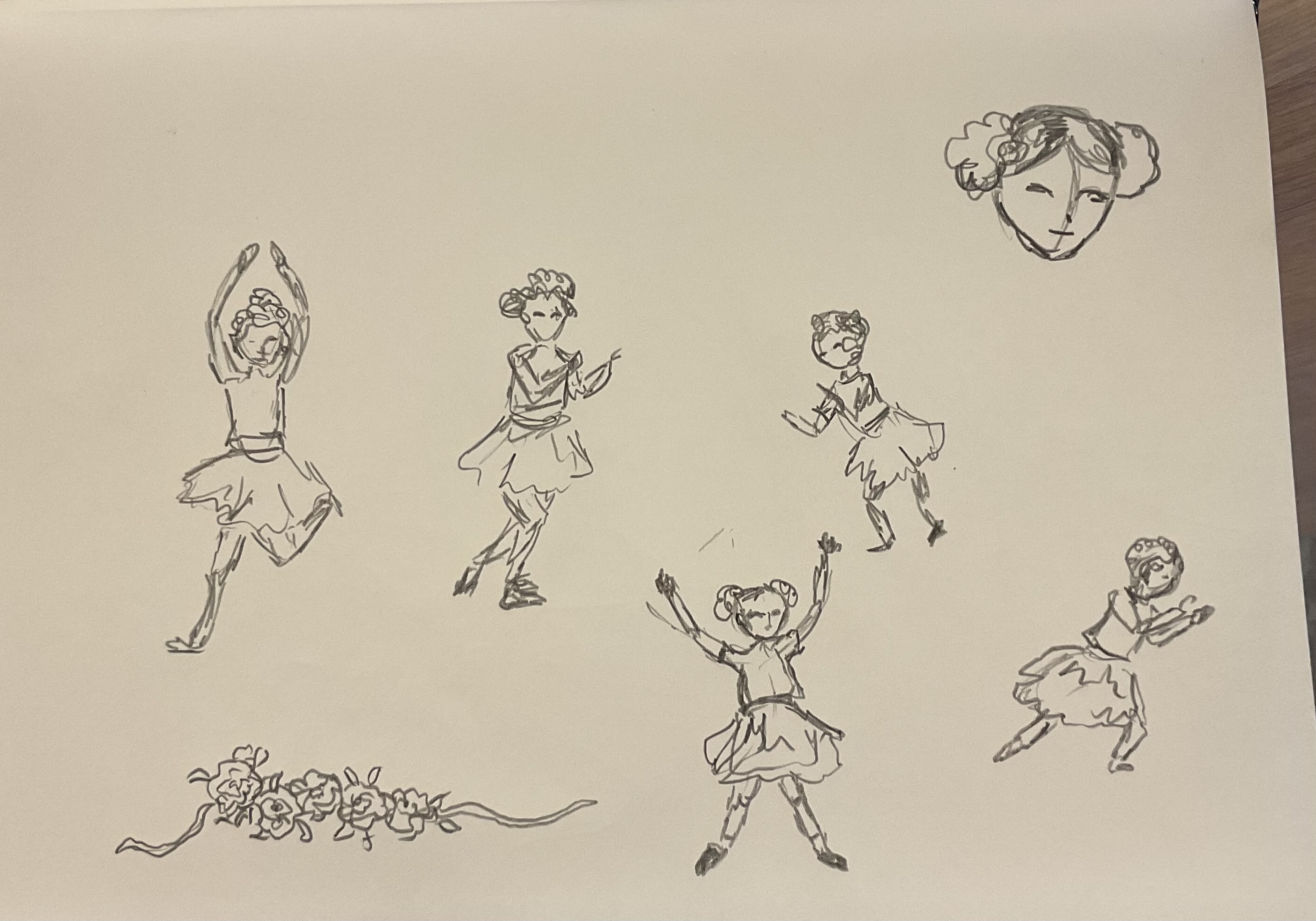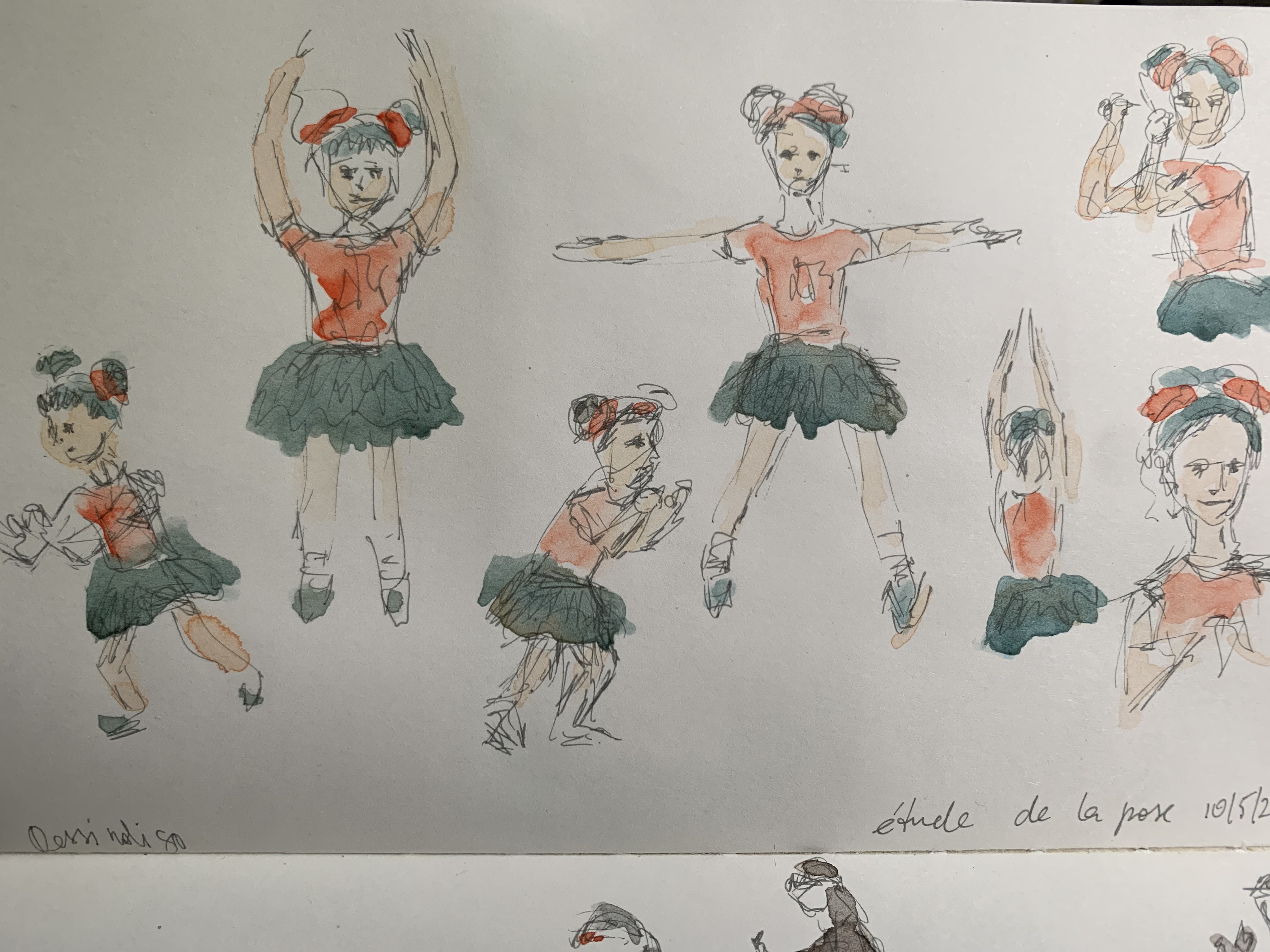 Tes esquisses sont très vivantes, c'est top ! N'hesite pas à bien rendre leur silhouettes visible pour que ça soit encore plus impactant, par exemple pour ta danseuse tout à droite, sa jambe se perd avec le tutu, tu pourrais relever légèrement le tutu pour que sa sois encore plus compréhensible. Parfois en s'eloignznt légèrement de la réalité le résultat ressort encore mieu :)
