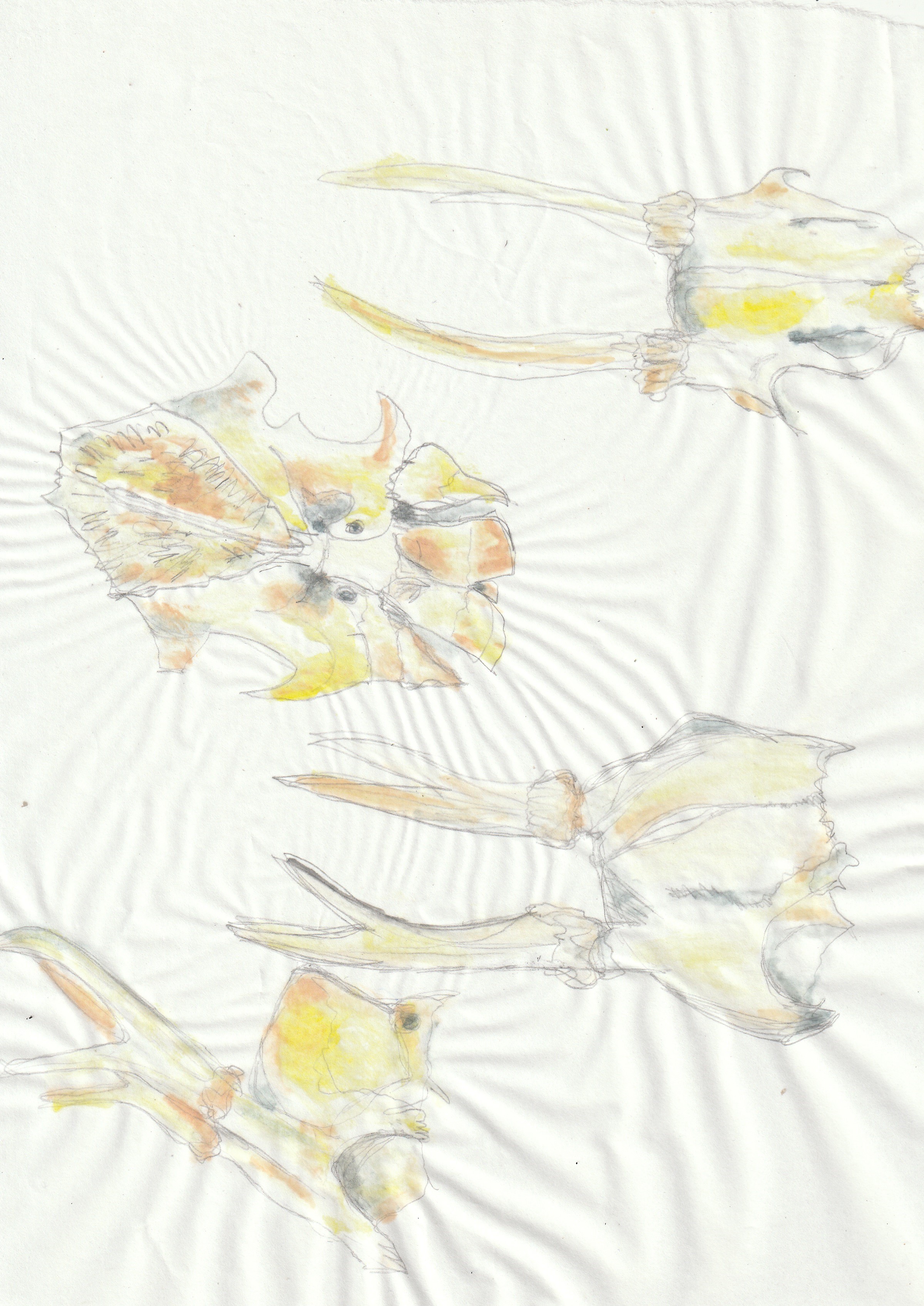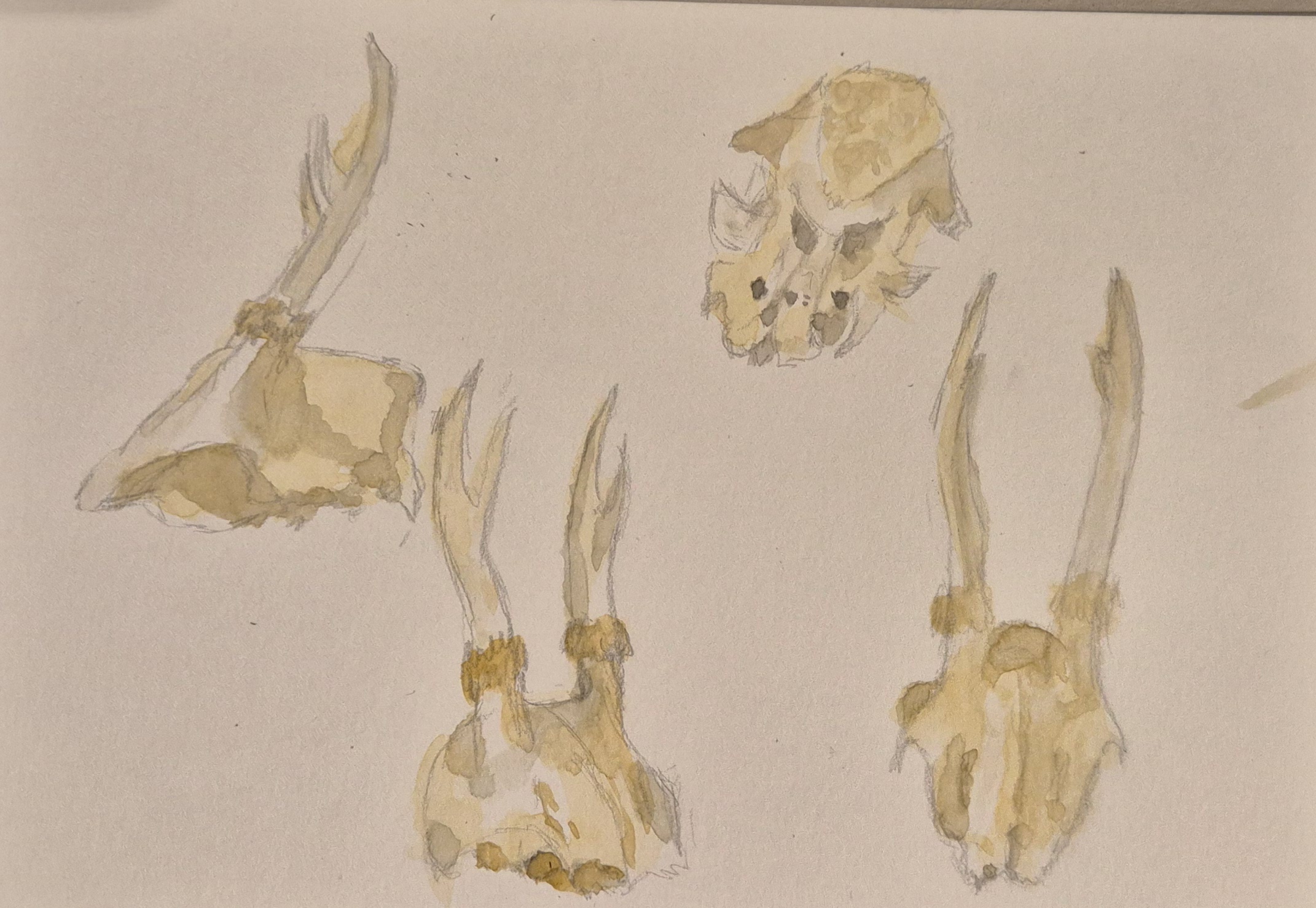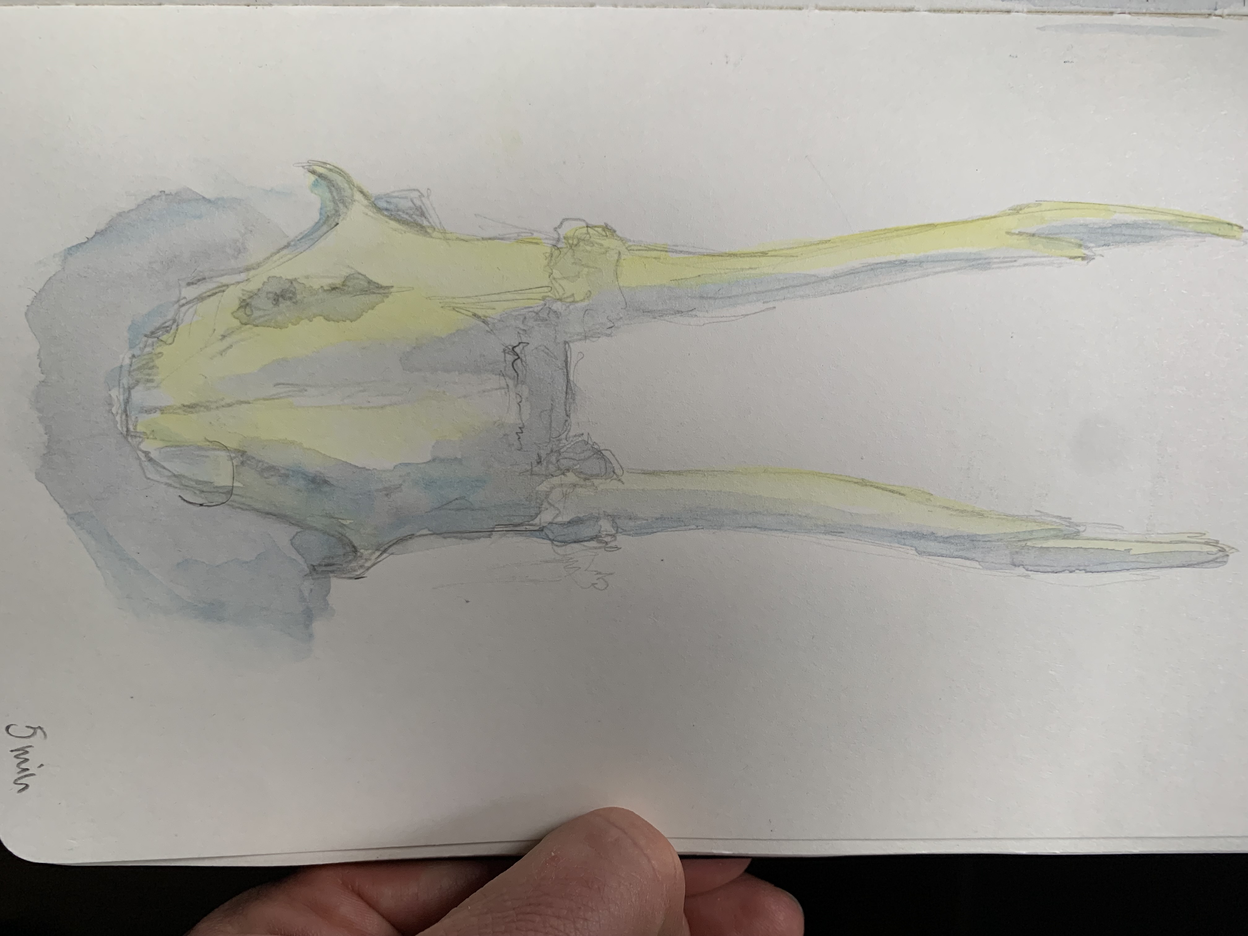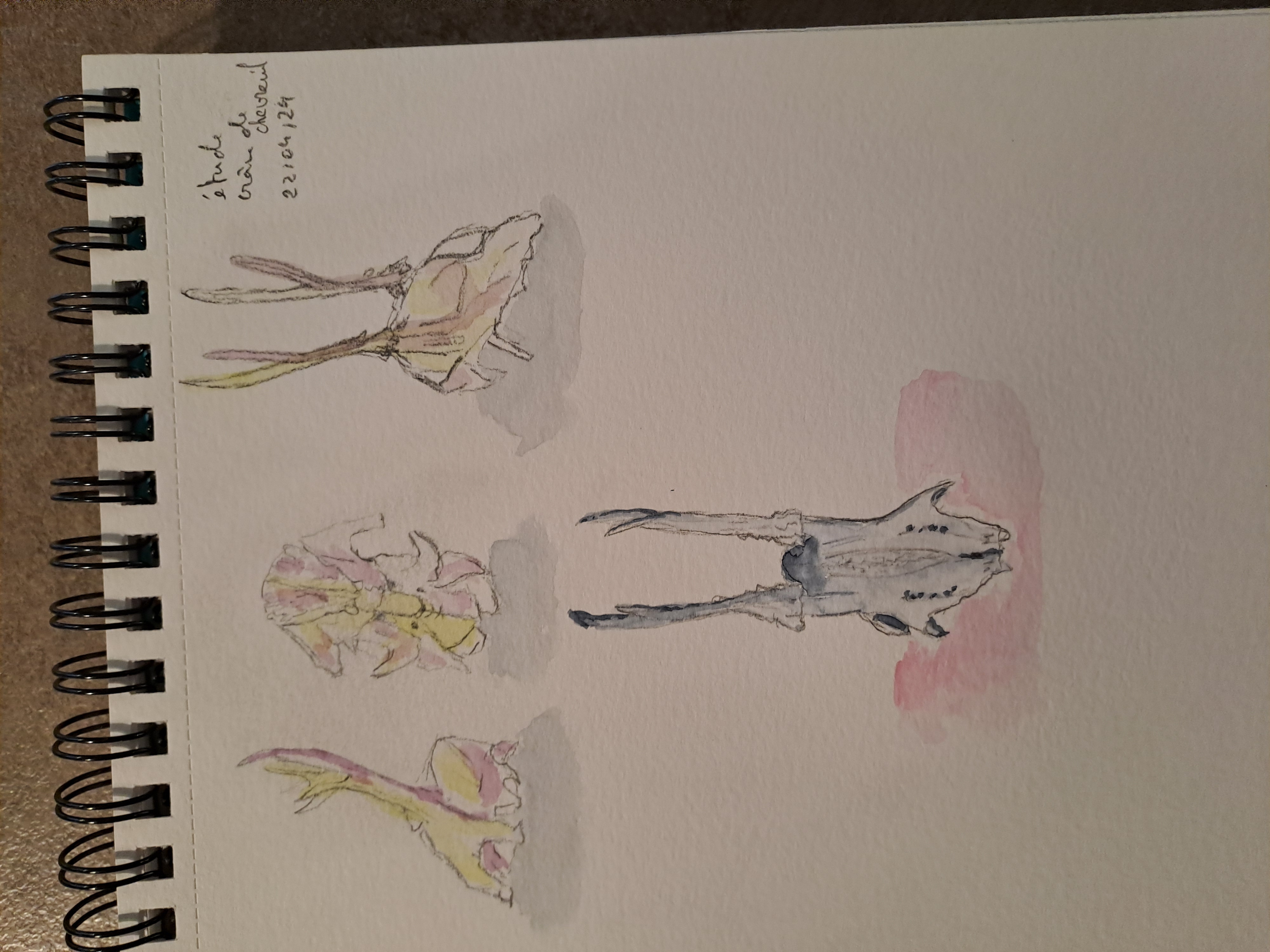 Je m'excuse pour le gondolement du papier, je pense que les esquisses restent néanmoins visibles. J'ai mis 15 minutes pour les esquisses et 10 pour les touches colorées.