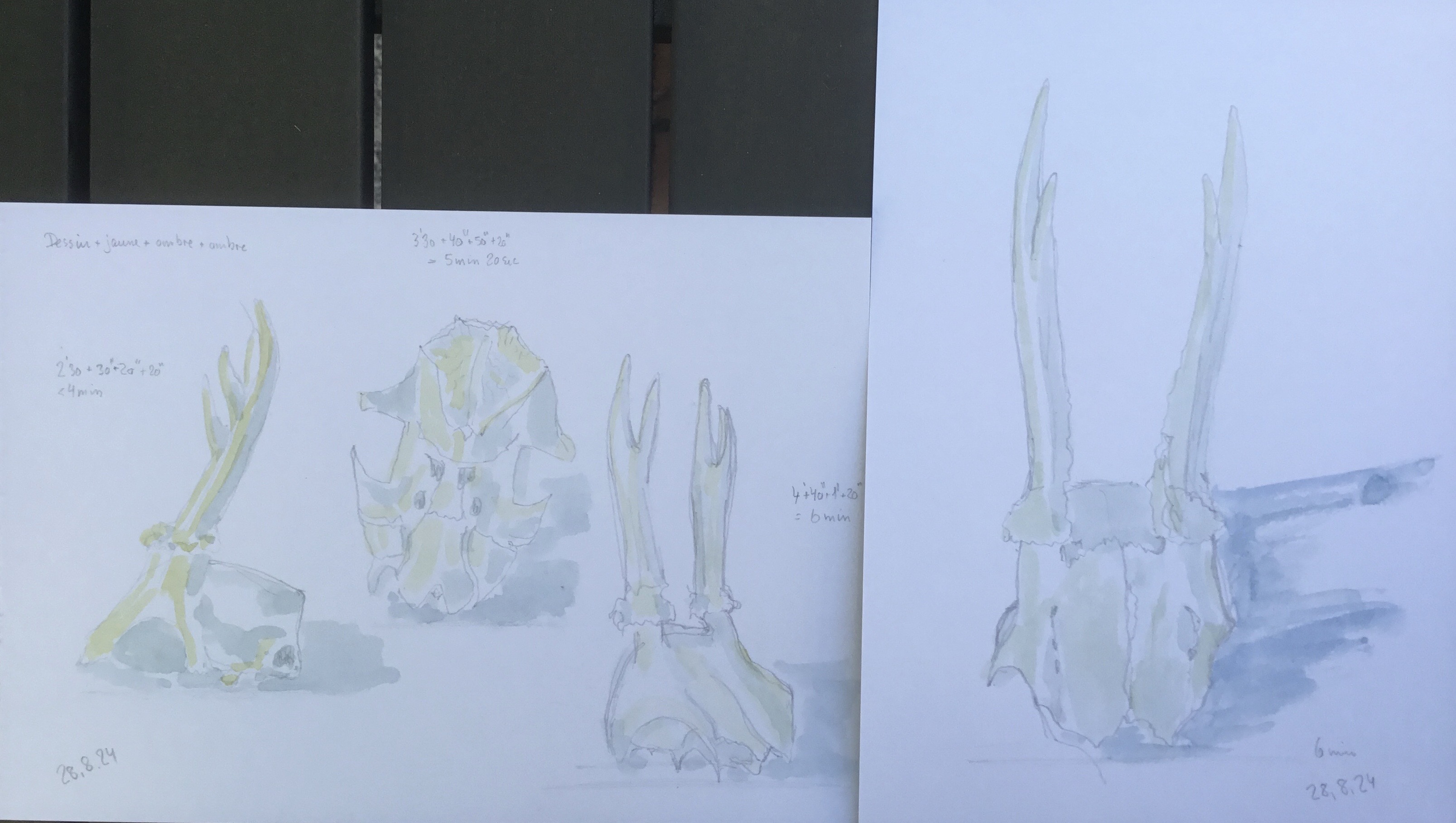 Les exercices. Par contre je n'ai pas encore testé l'aquarelle donc au crayon graphite. Par contre si c'était 15mn pour les 4 dessins... C'est plutôt raté pour moi... Entre 8 et 15mn pour chaque.