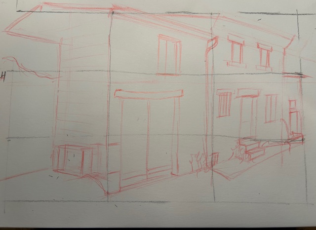 Pour le dernier plan, ne double pas ton trait ou utilise le feutre 0,1 pour donner l'impression que cela s'efface dans l'atmosphère et au contraire un 0,3 pour les maisons. Ca créera du contraste