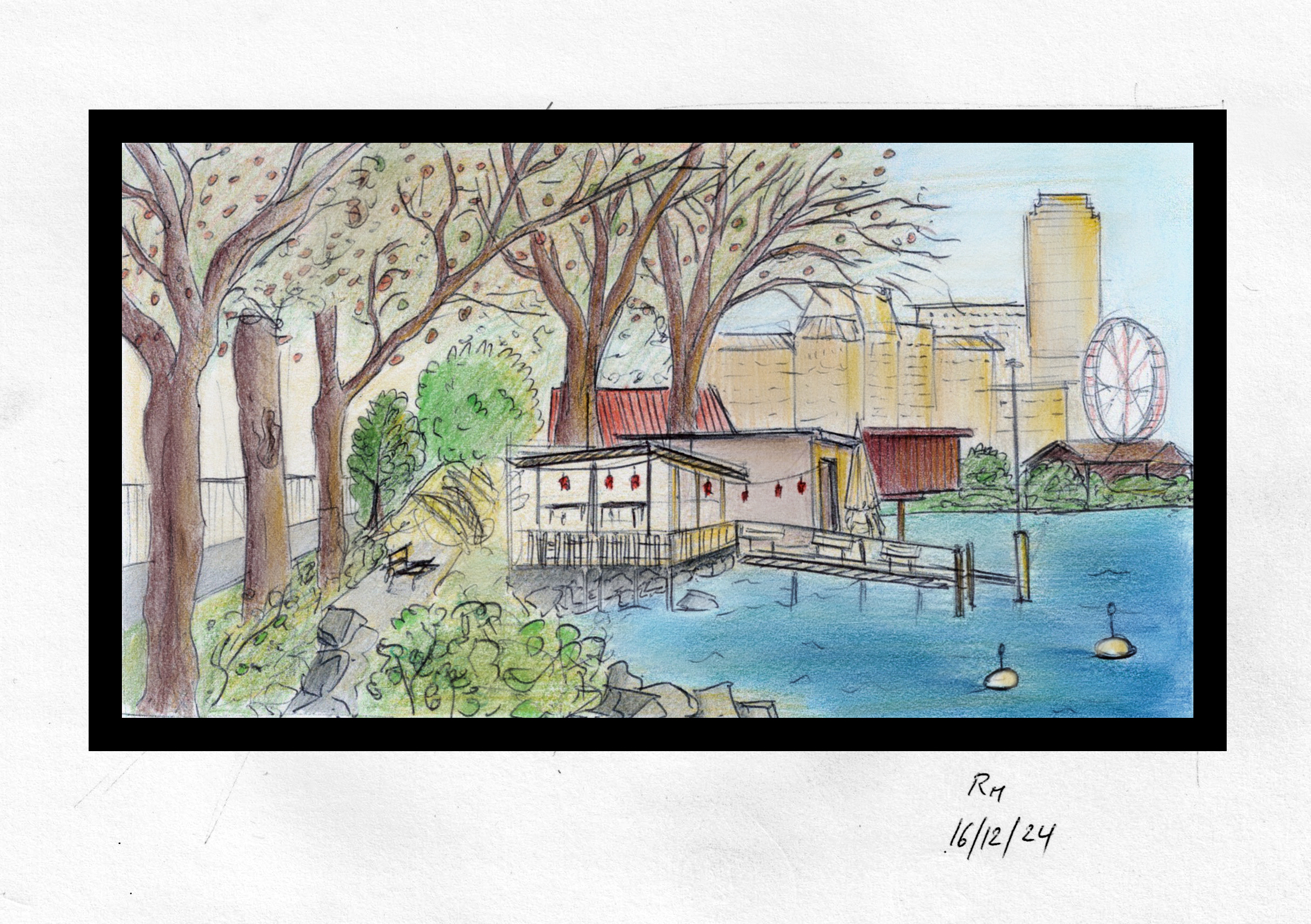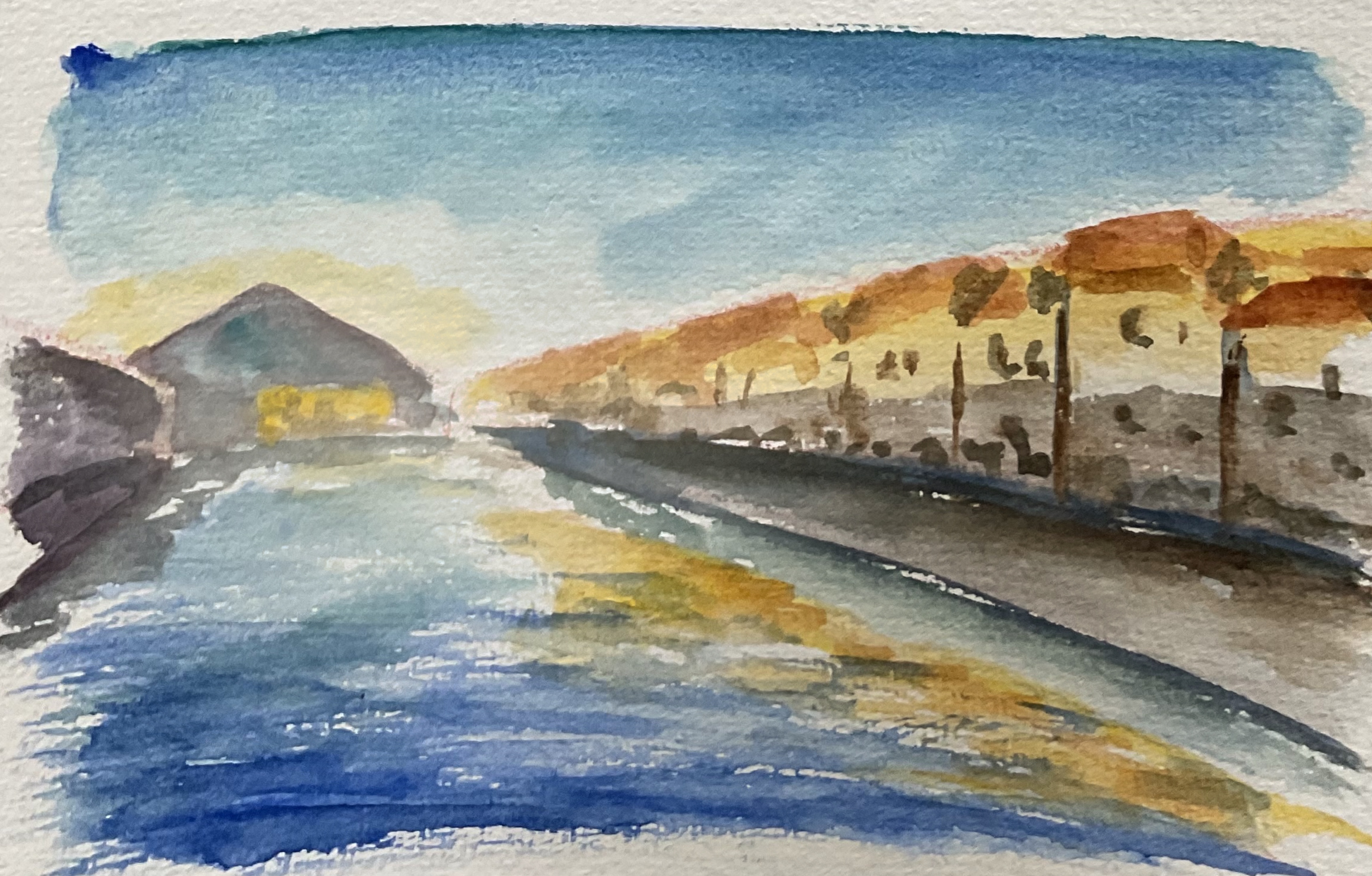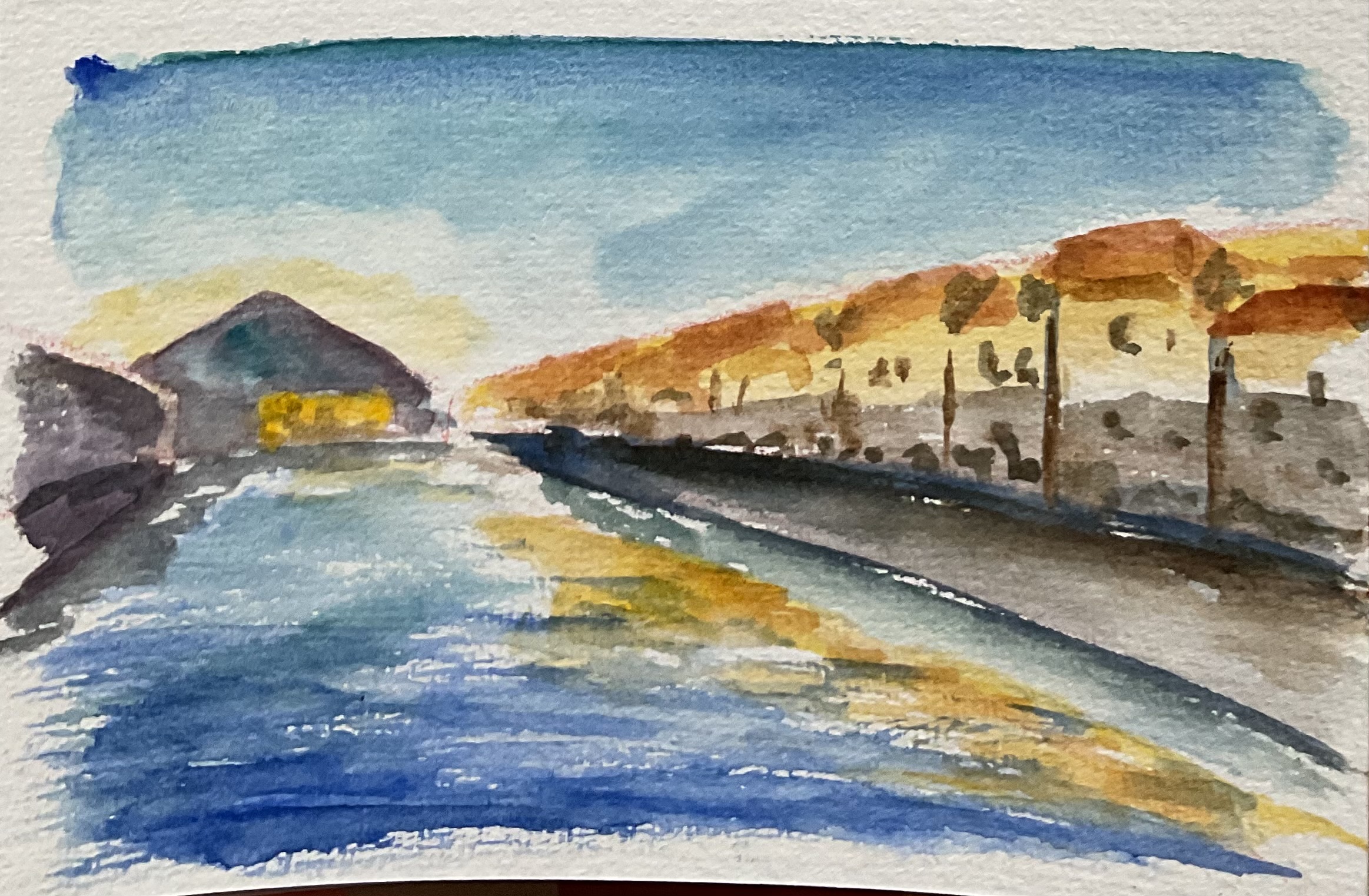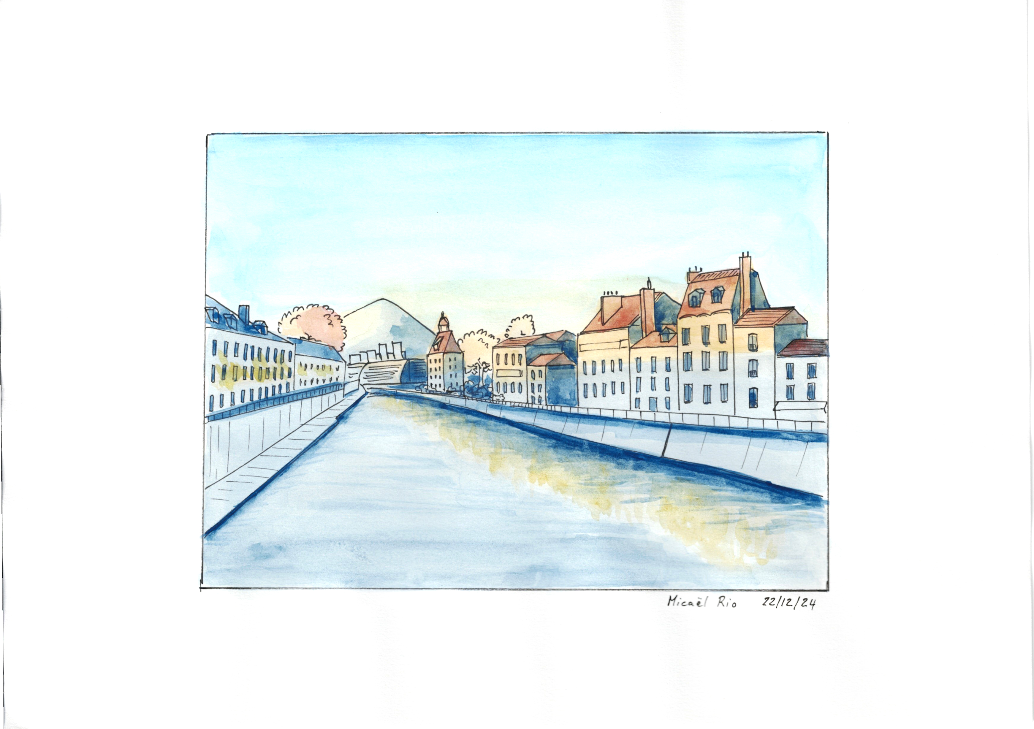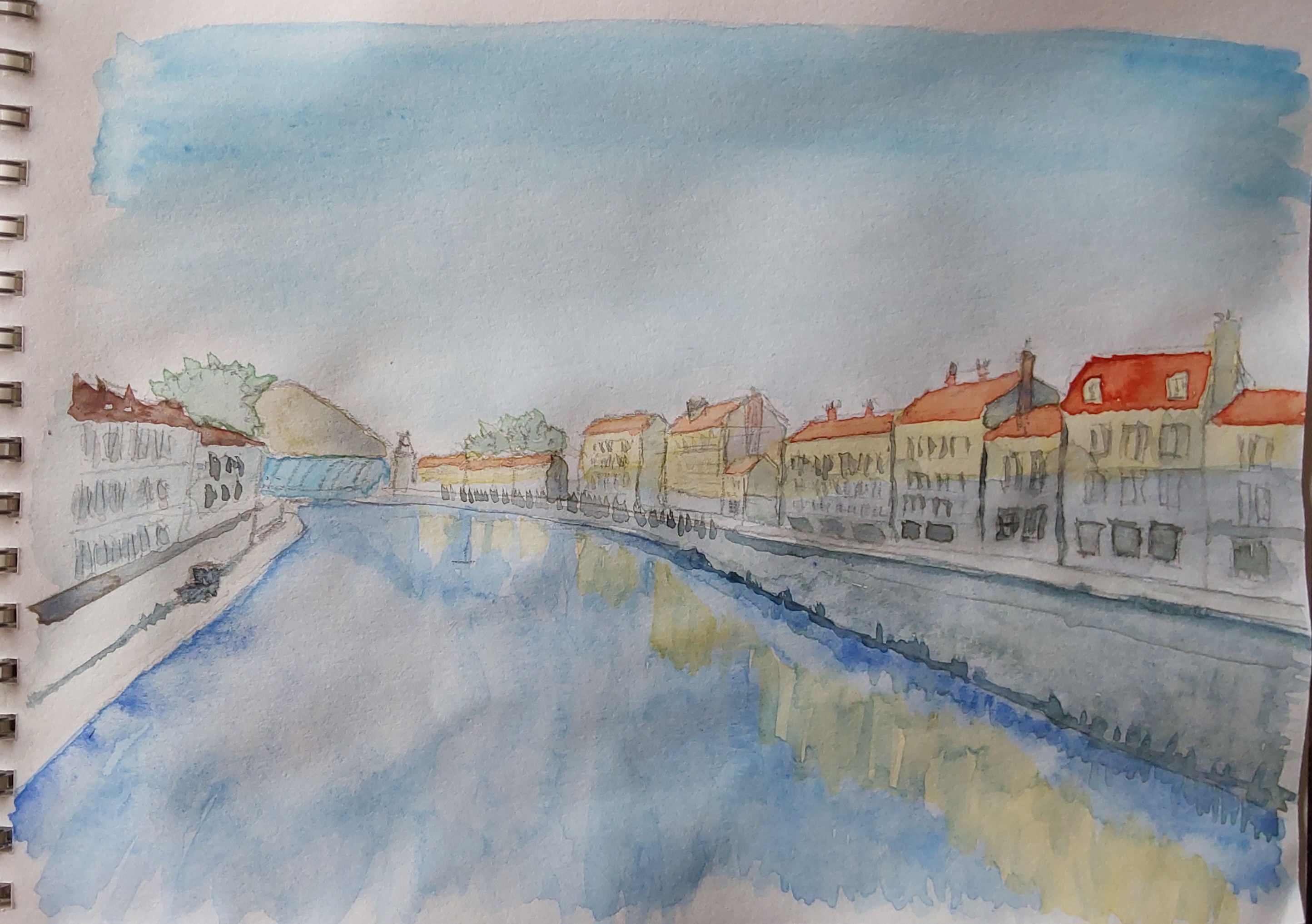Encore une fois cette aquarelle est réussit, peut être que pour intensifier la profondeur tu aurais pu utiliser des teintes plus claires pour les bâtiments du fond, je n'ai pas grand chose d'autre à dire, c'est top 👍