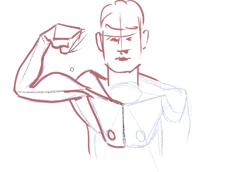 C'est bien et clair sur tes bras, ils sont peut être un peu "rigides" : vois si tu peux créer un léger angle en déportant la main vers l'extérieur. L'avant-bras n'est pas exactement aligné dans l'axe du bras lorsqu'il est en extension. Ta construction est bonne, si tu essaye cet axe là ce sera parfait !