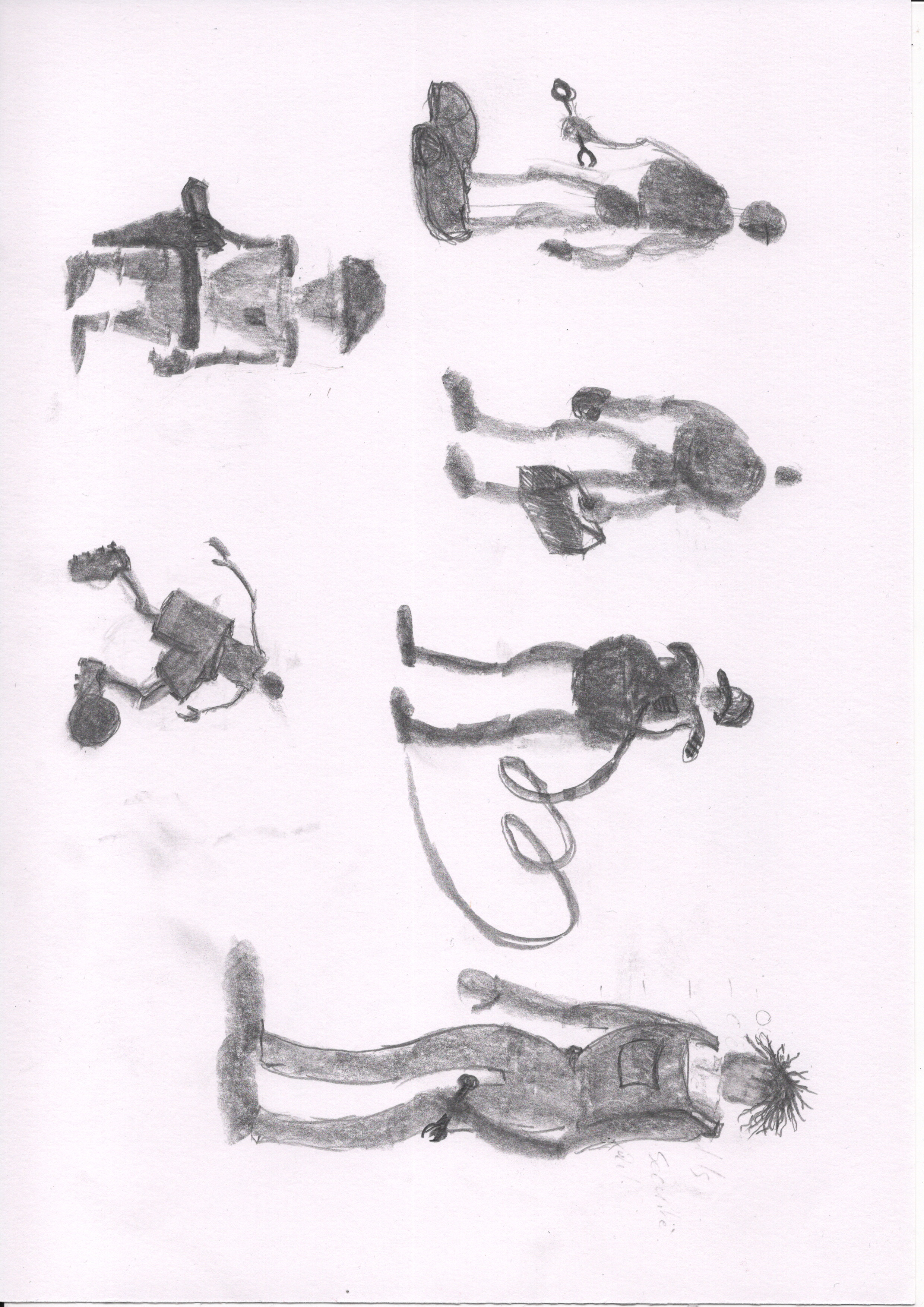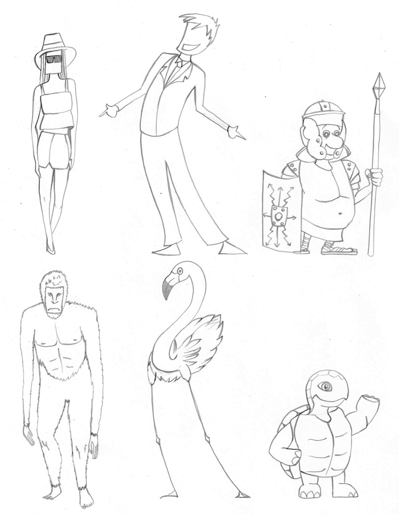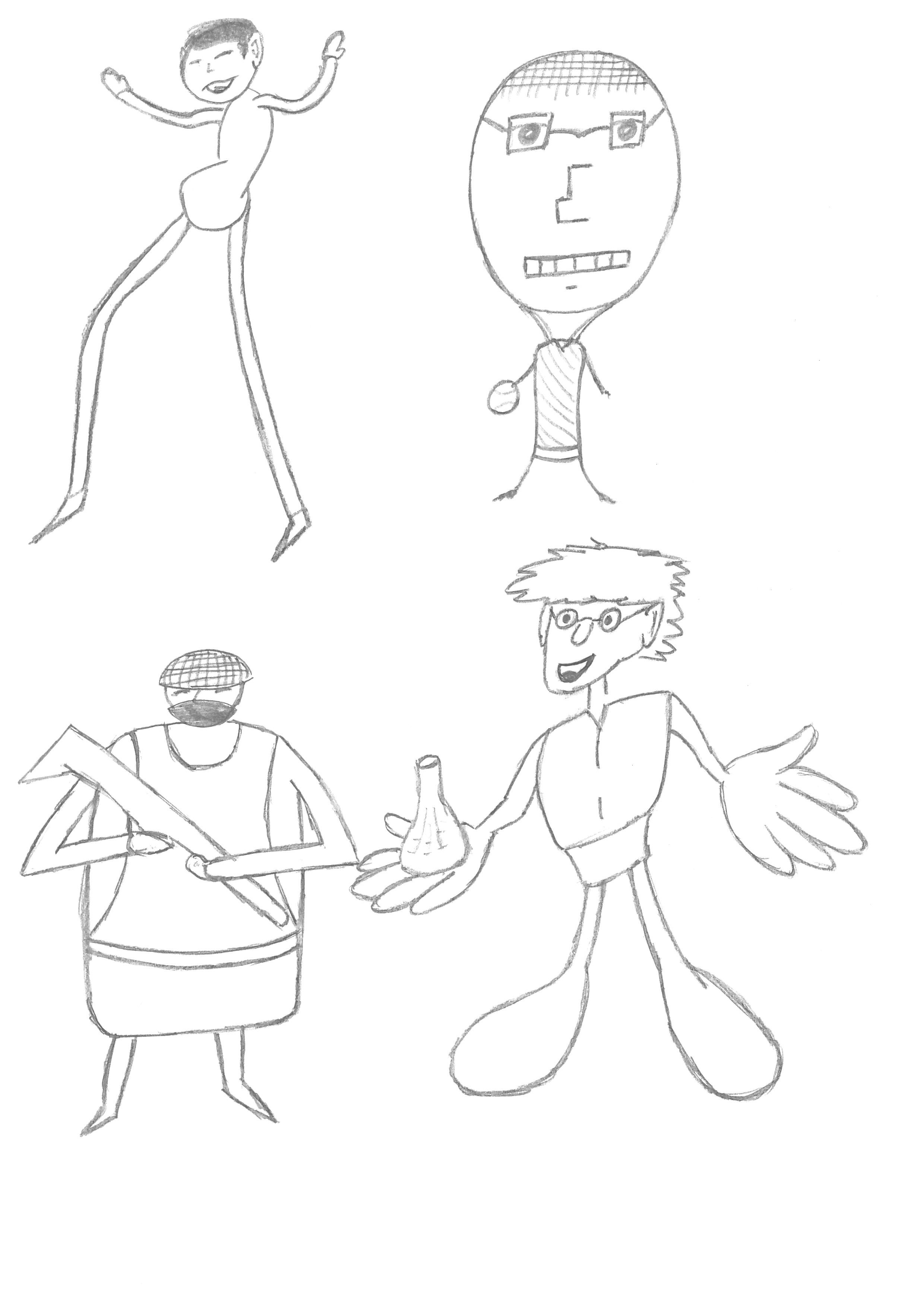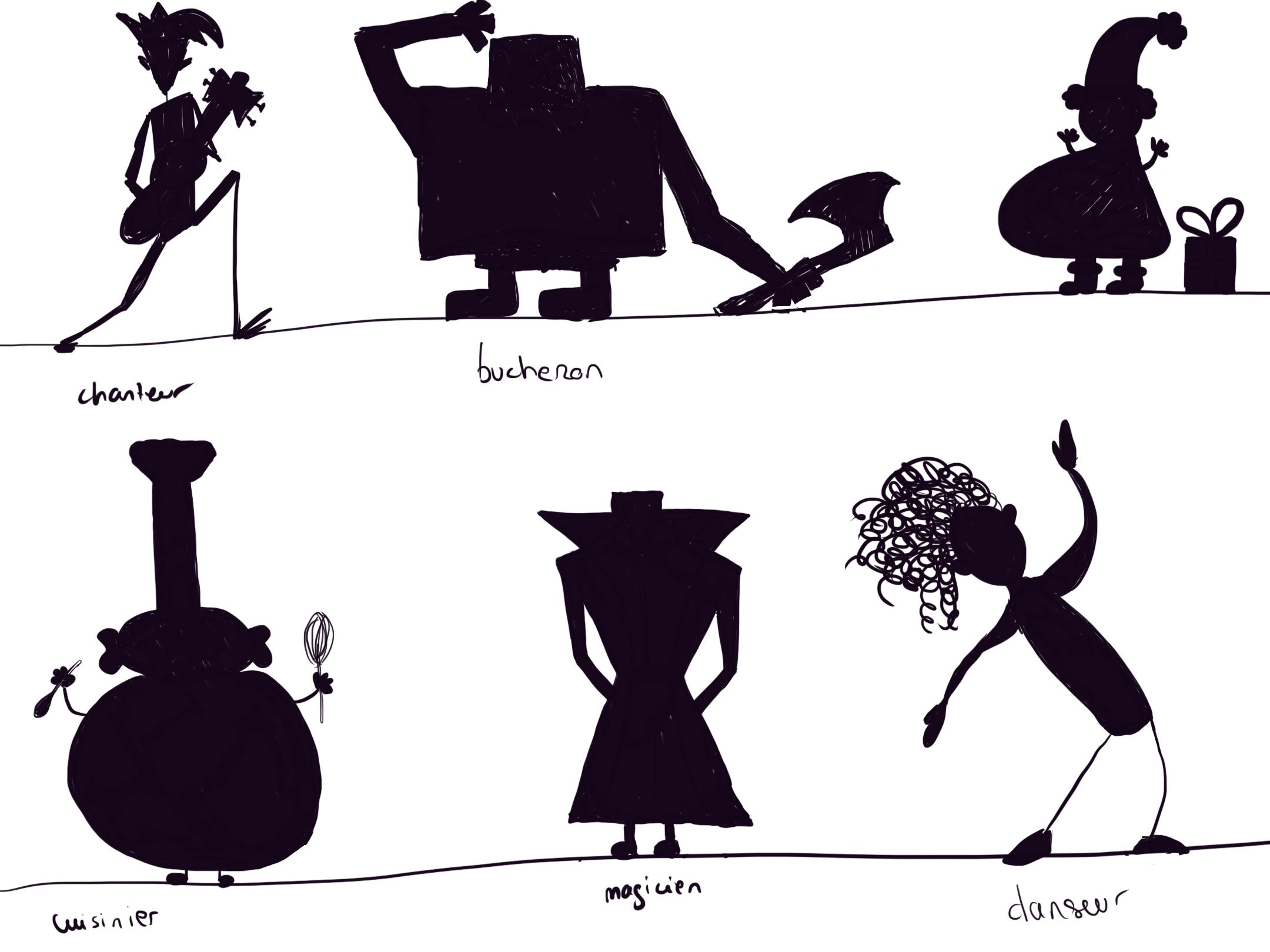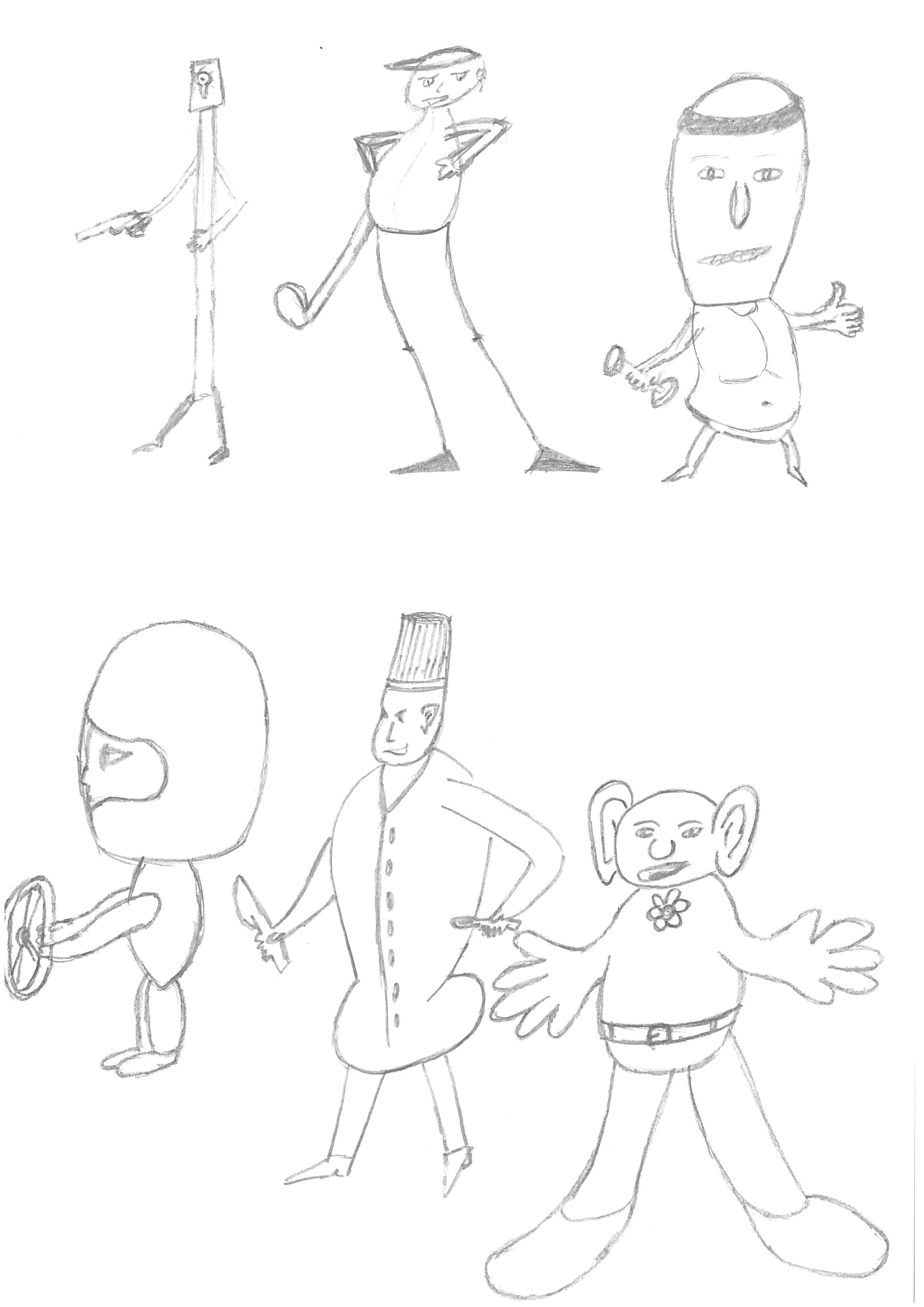 En haut des personnages que j'ai imaginé selon le petit détail déjà dessiné.