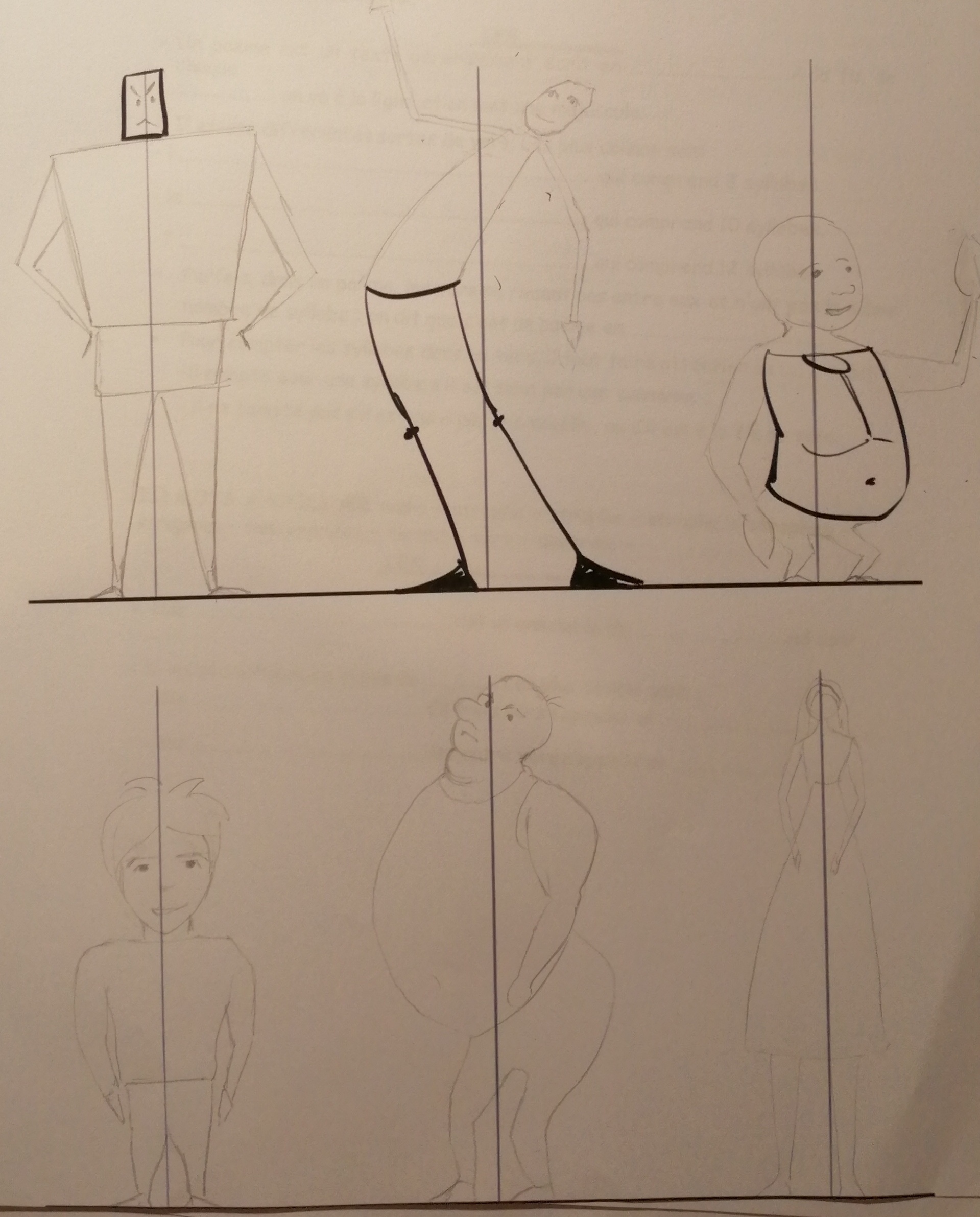 Ce sont de bons personnages ! Tu as bien appuyé l'exagération de certains, tu peux encore aller un peu plus loin. Un conseil que tu entendra dans mes cours : quand on pense aller loin dans l'exagération on ne l'est souvent pas assez. Pour ça il faut exagérer le même dessin en en faisant un autre. Puis ré-éxagérer le nouveau dessin en forçant les mêmes traits. Puis un autre. Au bout du 4e ou voire même du 10e là on sent qu'on a fait du chemin.