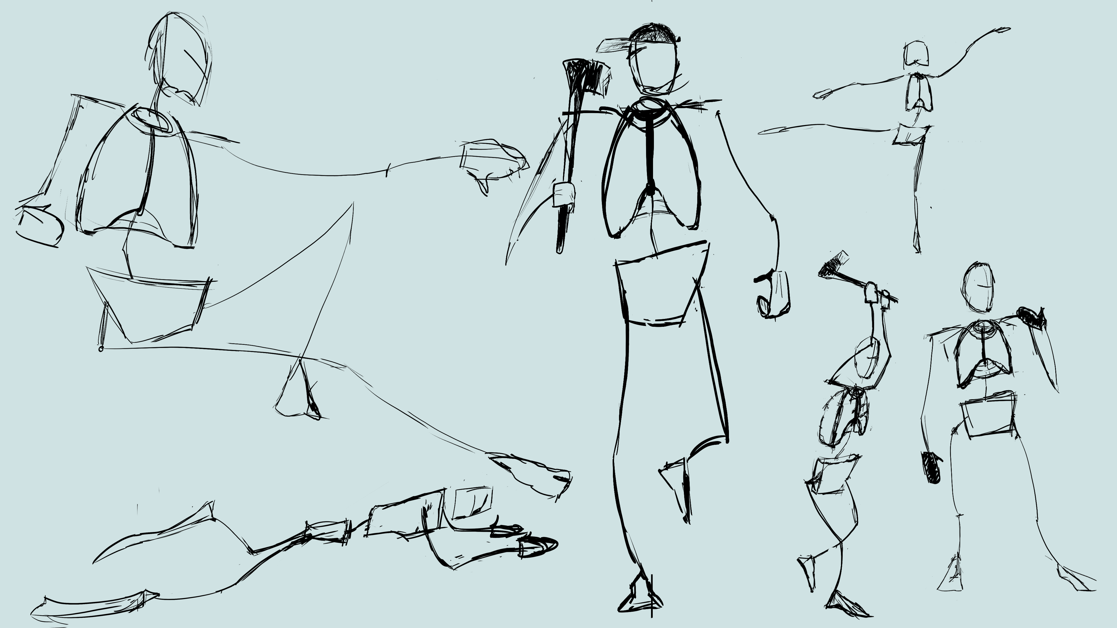 Super, tant que tu es sur tablette essaye de travailler avec une brush plus large, habitues toi à travailler avec un outil pas très précis pour gagner en précision avec et petit à petit raffiner la taille. Tes volumes sont pas mals mais travaille bien selon les axes épaules/bassin. Ton bucheron de face est un peu desaxé avec un bassin asymétrique, on a du mal à le comprendre.