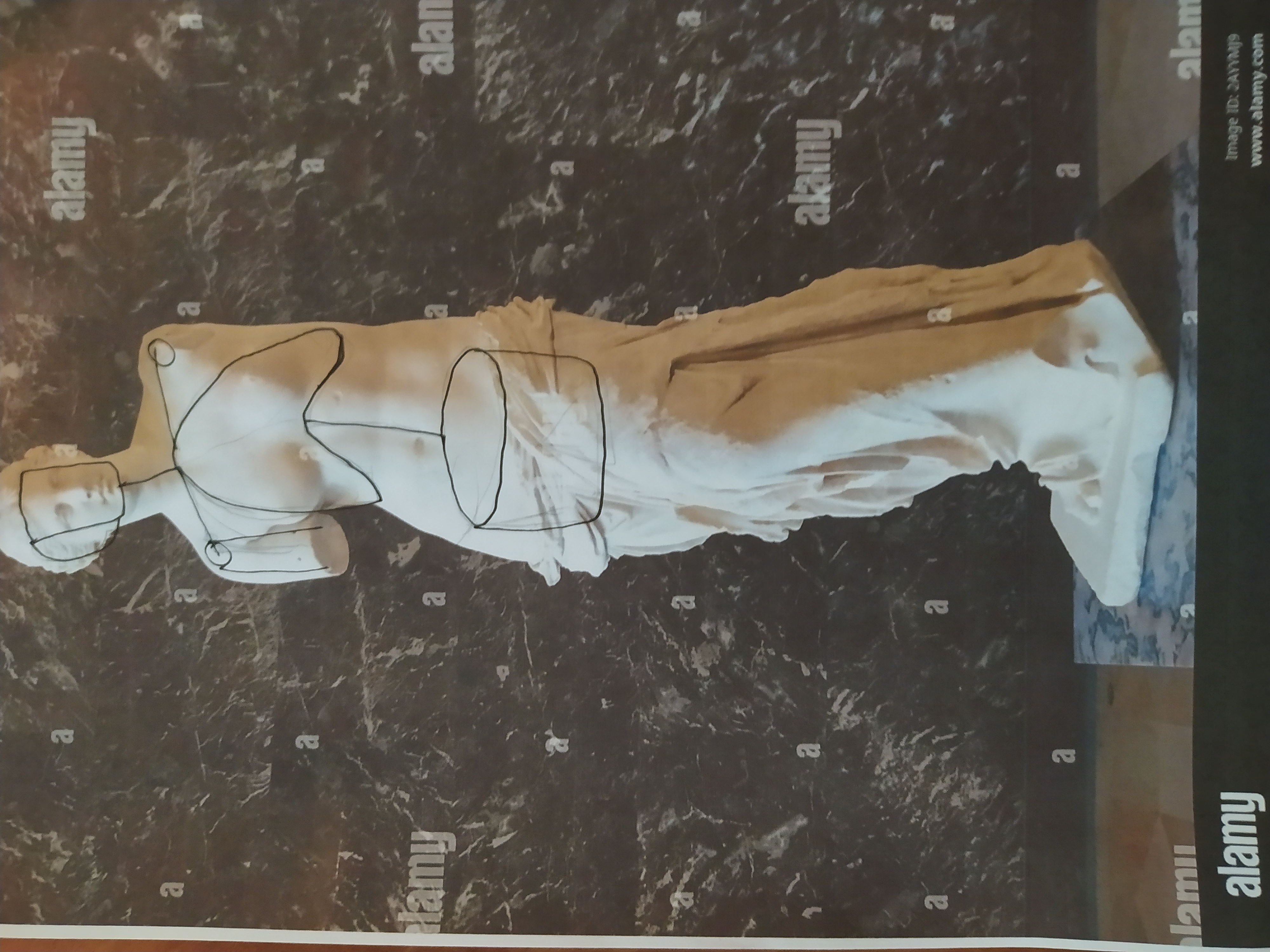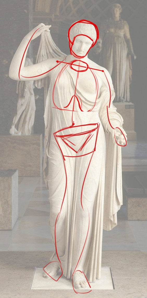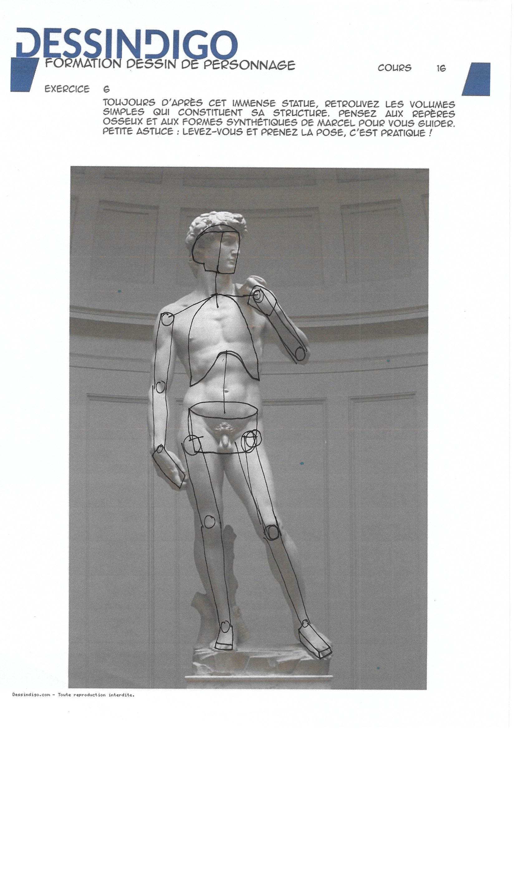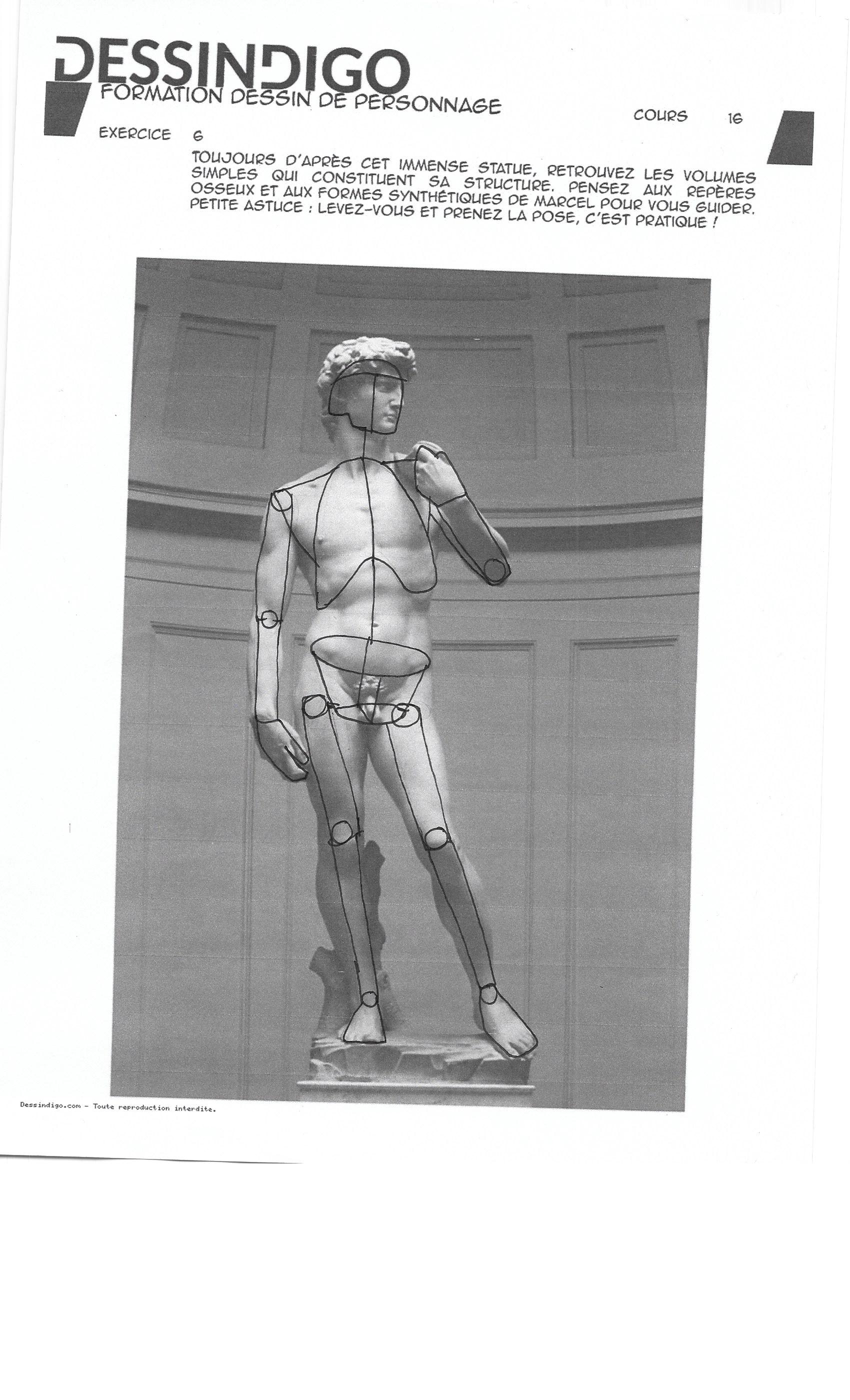 J'ai déjà corrigé ton David sur un cours précédent si je ne me trompe pas, je t'envoie un dessin pour le discobole donc. Cela va de paire avec la Vénus aussi. Dans l'idée tes cages sont un peu petites, essaye de bien cerner que le haut de la cage c'est la largeur et la base du cou. Quand tu ne vois pas le rachis ne le place pas et fies toi davantage aux repères osseux visibles. Je te propose aussi pour les membres de travailler soit en volumes soit en silhouette. Le tout sans les boules aux articulations... ;)