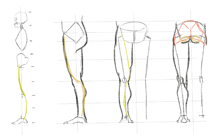 Tu peux être un peu plus généreux sur le placement de la graisse des fesses, ici ta masse en bleu en un peu plus haute et fine que le contour des fesses. Distingue bien le muscle de la peau, entre les deux c'est la graisse. Le reste est top c'est parfait !