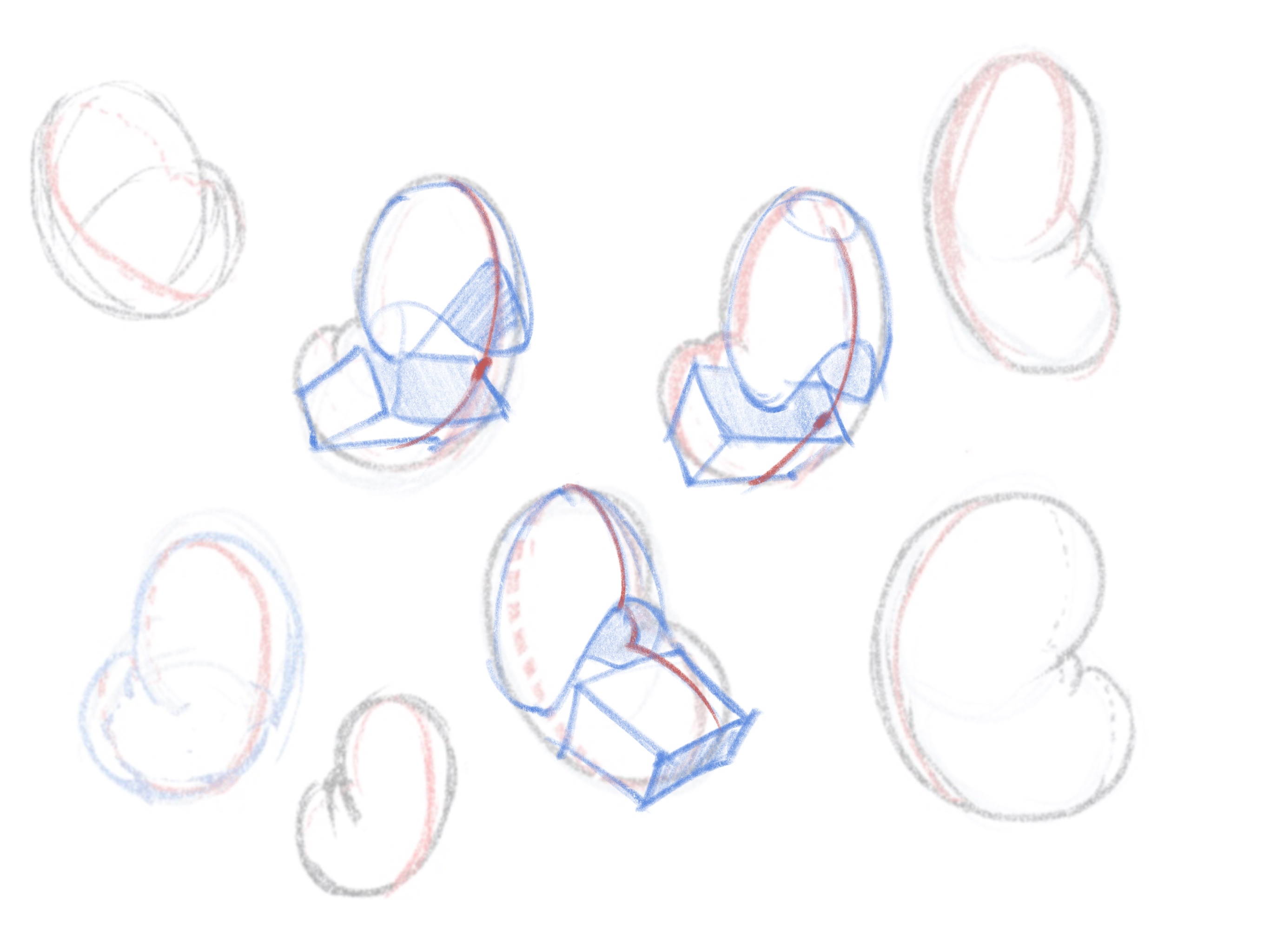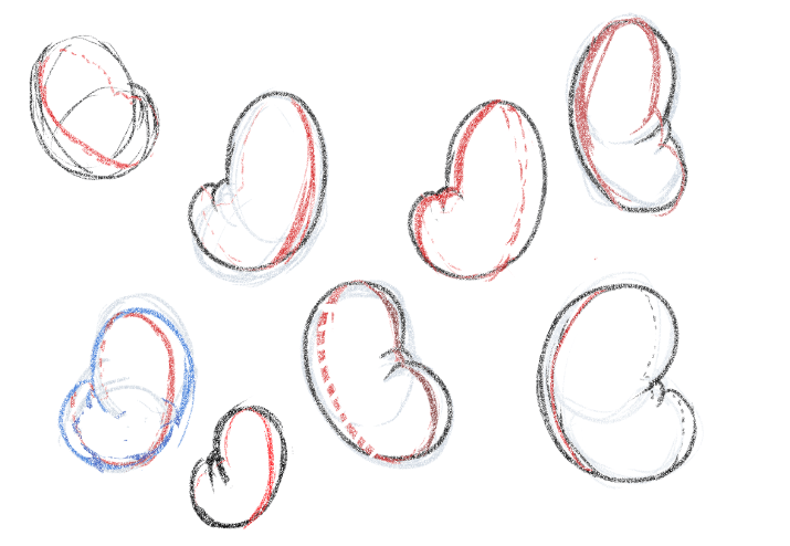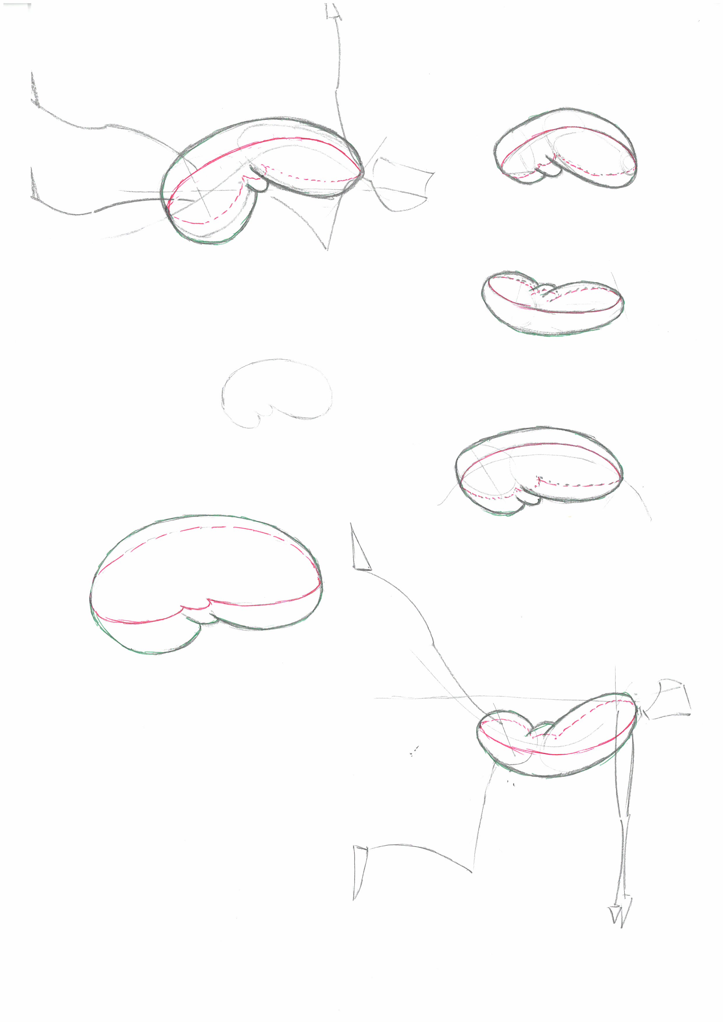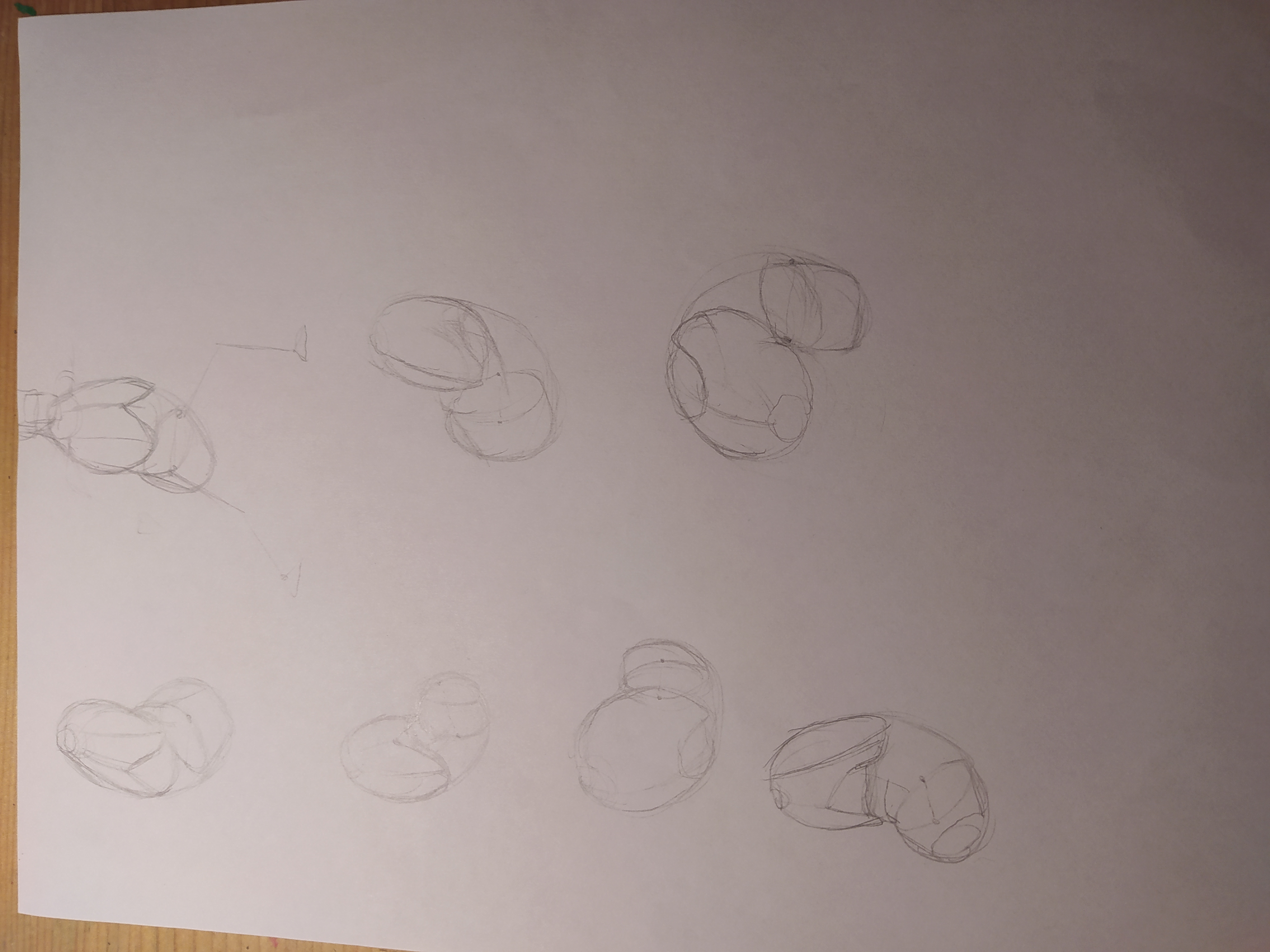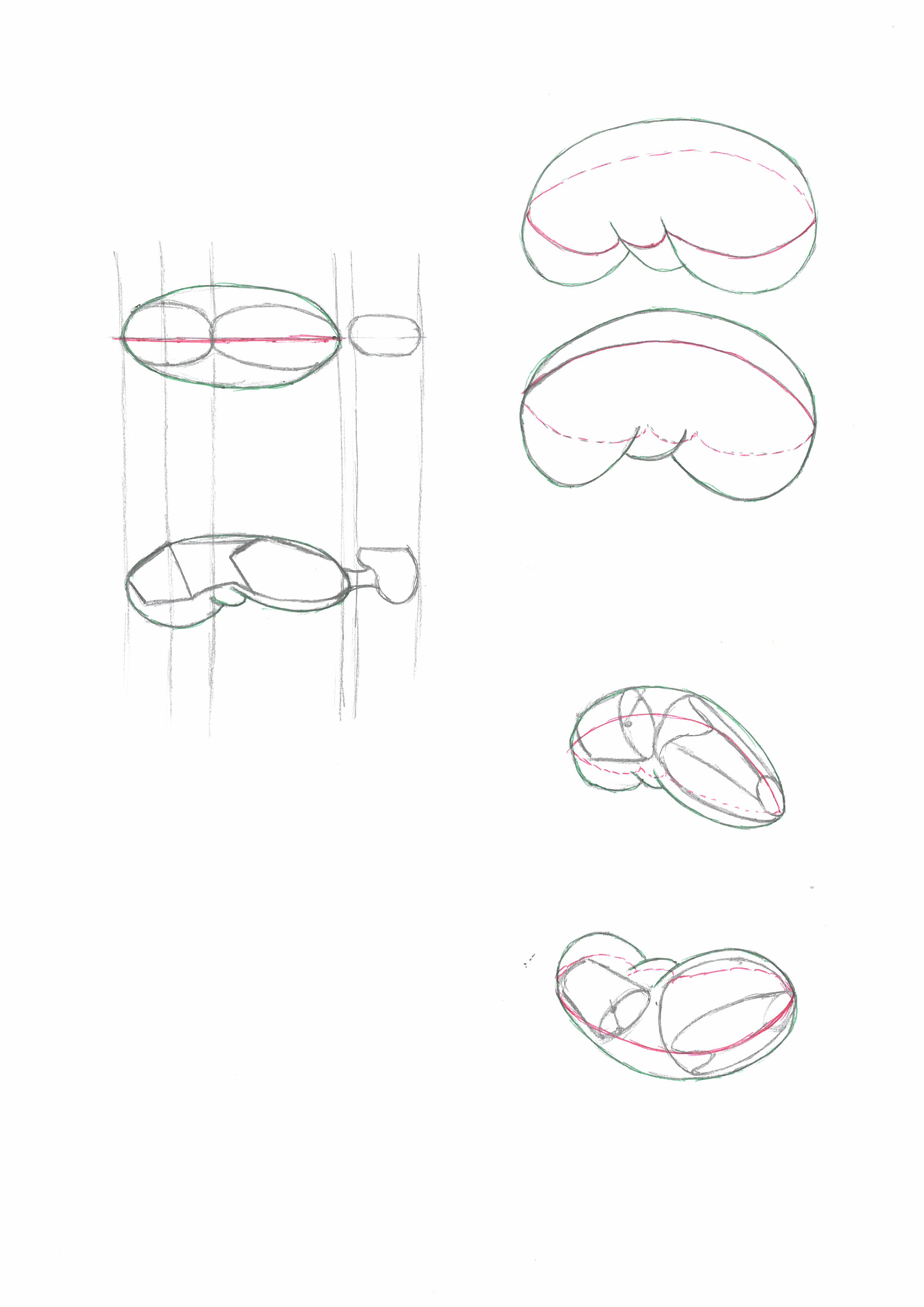 Voici une piste pour tes beans, les volumes de cage sont plutôt bons c'est la flexion du bassin qui ferait palir même les plus grandes contorsionnistes. Même si tu exagère trop la forme de base de la bean tu peux te dire que tu sais que quand tu définis le squelette à l'intérieur tu peux laisser de la place pour la masse musculaire/graisseuse des fesses en arrière par exemple. Ca évite de trop partir loin si jamais... J'espère que ça peut t'aider