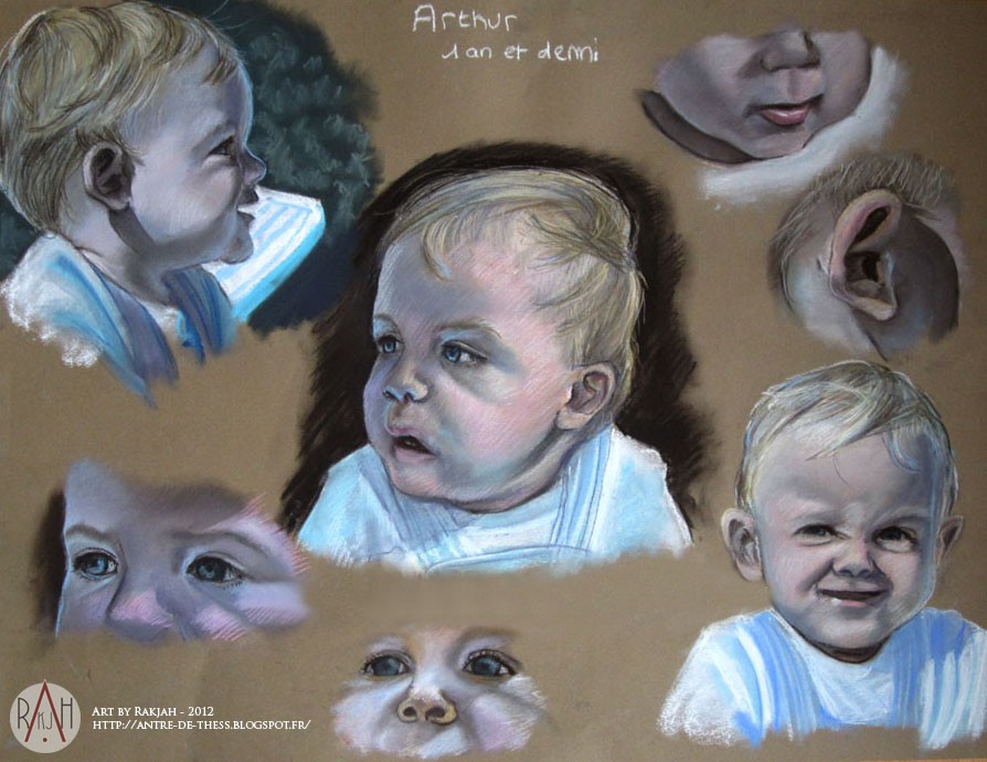 Je te joins des portraits faits d'après photo il y a quelques années. Oui parce que les enfants, c'est mignon, mais ça bouge beaucoup, surtout quand ils sont jeunes :3