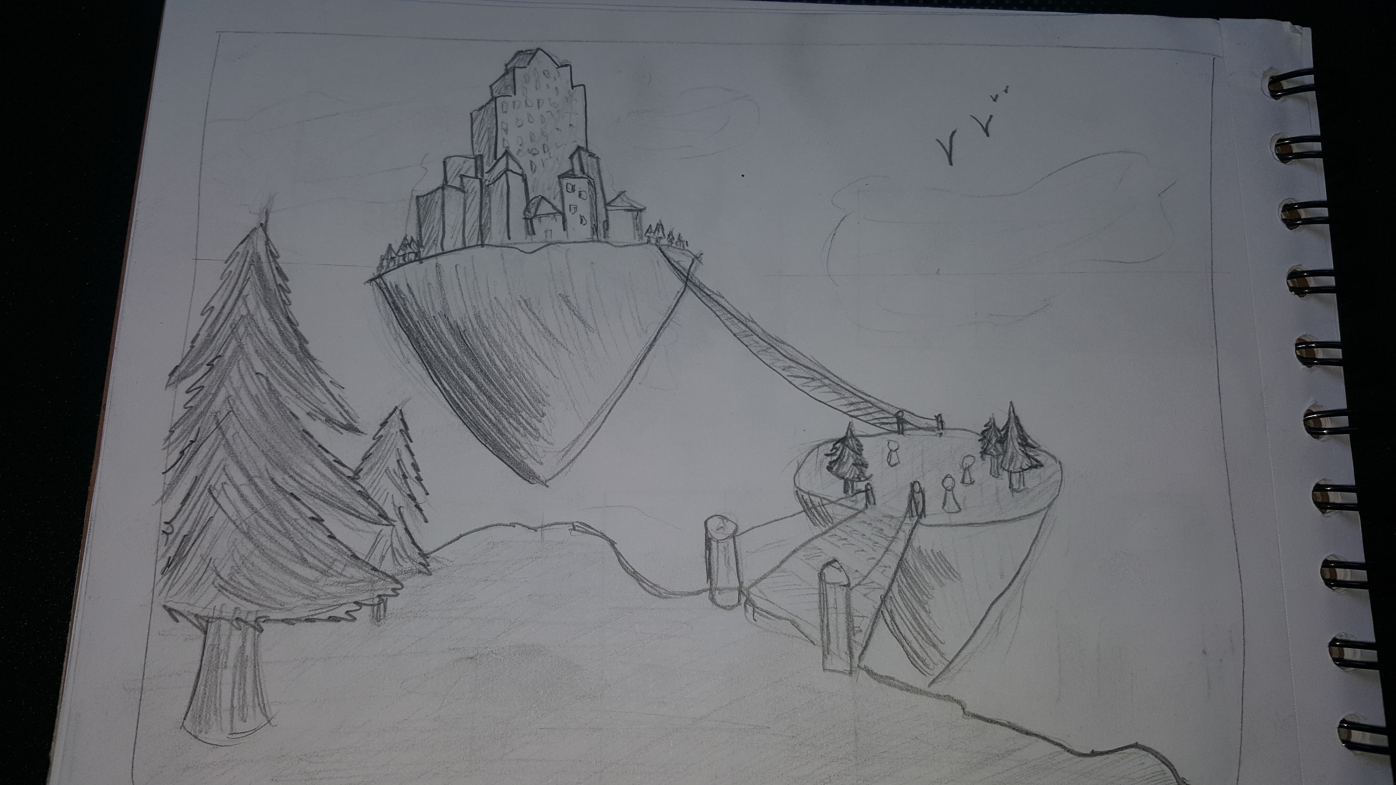 Comment peut on dans ce cas (et est ce possible) faire ressortir un "arrière plan" pour le rendre plus important ? estomper le premier plan? Jouer avec les lumières (j'avais pensé pourquoi pas à faire une ambiance "nuit" avec un clair de lune donnant sur la ville... je sais pas trop en fait)? Ou carrément rendre plus foncé ce qui est moins important? J'avais aussi pensé à augmenté les contrastes et la proximité des zones sombres et claires sur la ville pour attirer l’œil.