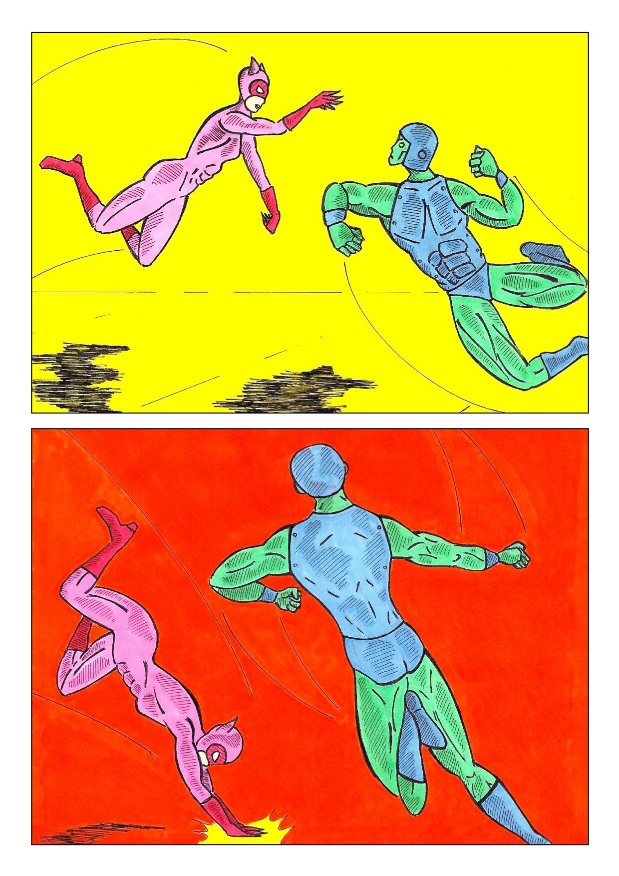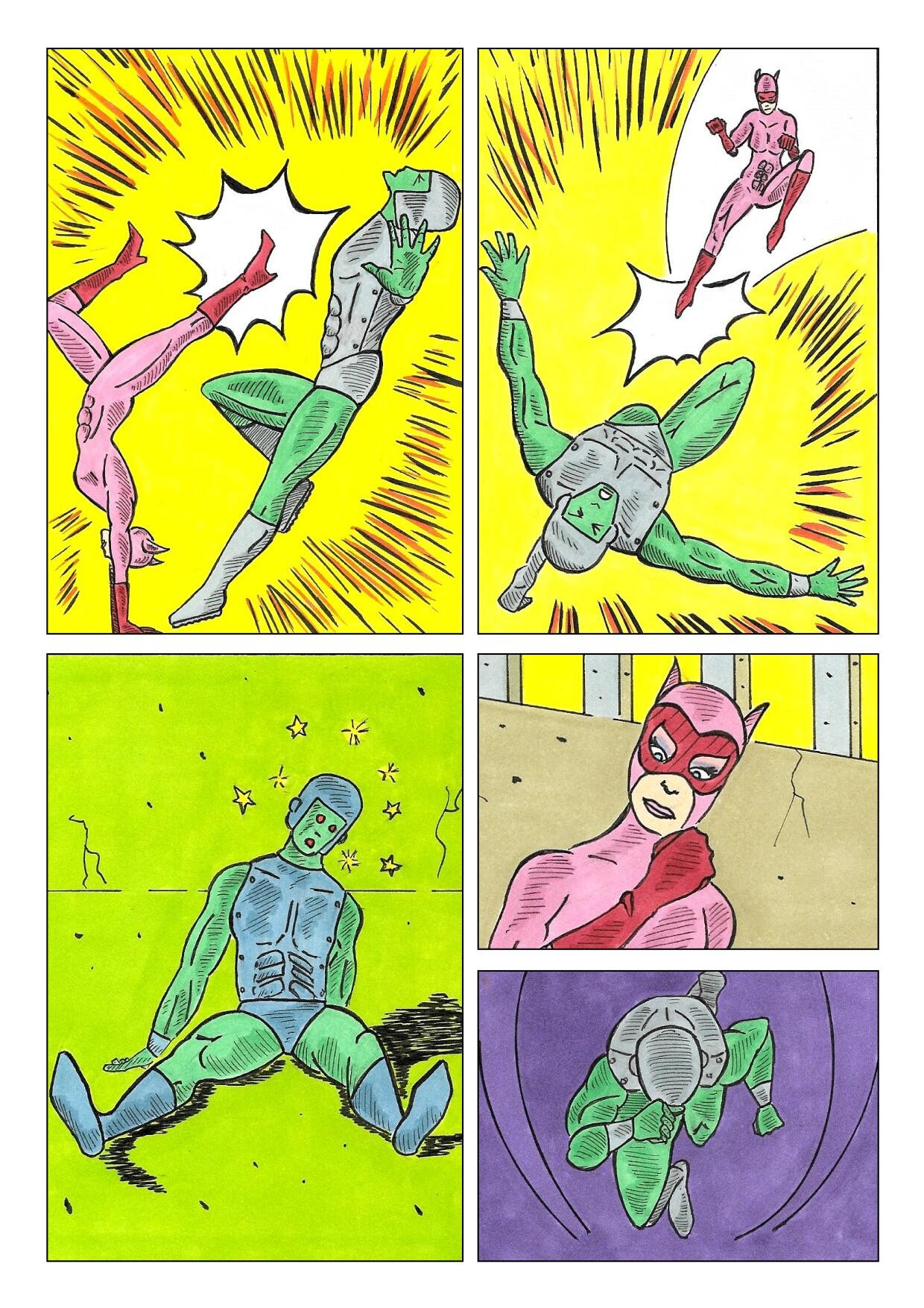J'aime beaucoup les effets d'impact et le mouvement des cases 1 et 2 des pages 4 et 5.